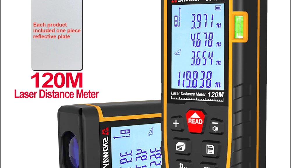 SNDWAY Rangefinder Laser Double Horizontal Bubble Distance Meter Range Battery-Powered Hand Tool Device SW-TG50 70 100 120