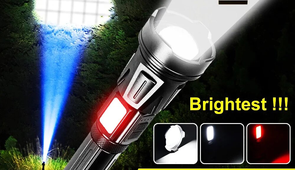 XHP360 36-Core High-Powered LED Flashlight USB Rechargeable 5000000 Lumens Tactical Flashlights 7 Modes and Zoomable for Camping