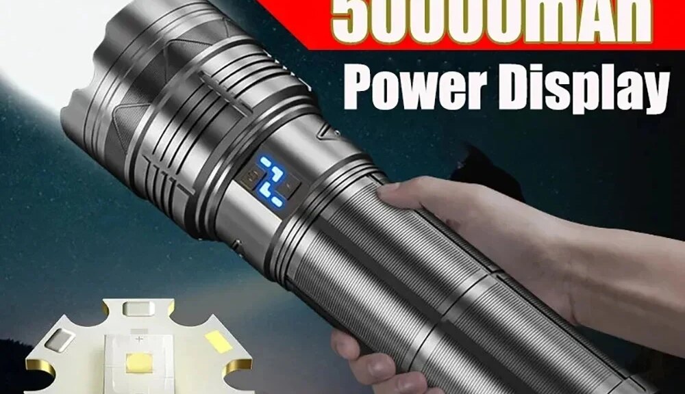20000LM Most Powerful LED Flashlight Super Bright Long Range Torch Type-C Charging Tactical Flashlight With Power Display