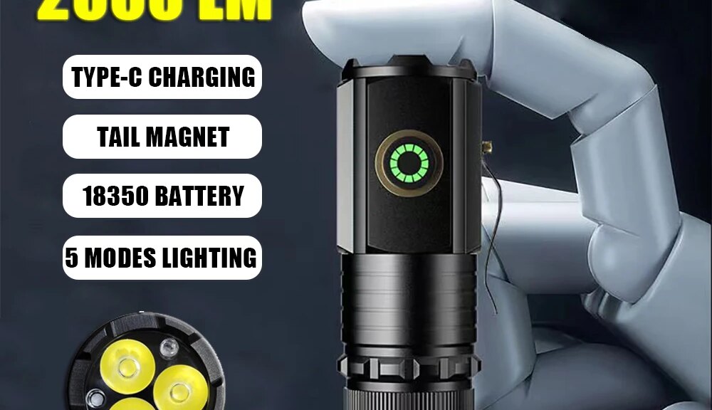 2024 Powerful LED Flashlight 5000Mah Rechargeable Flashlight 2000M Long Range Ultra Powerful LED Torch Magnet Tactical Lantern