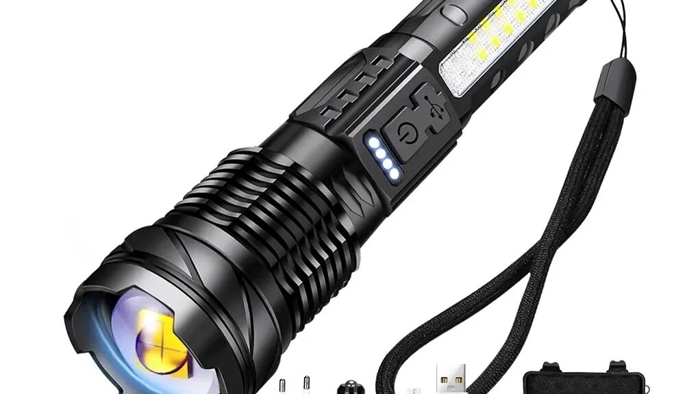 Price: Product Description: Light source: XHP70.2/XHP50.2 5-Switch mode: High light–Medium light–Low light–Strobe–SOS Press and hold the switch for 5 seconds to turn off immediately Size: 15.7*4*2.8CM Power: 1 x 18650 battery Charging method: Upgraded USB C port direct charge Range: 200 to 500 meters Zoom: Zoom lens ( zoom in / zoom out ) Waterproof rating: […]