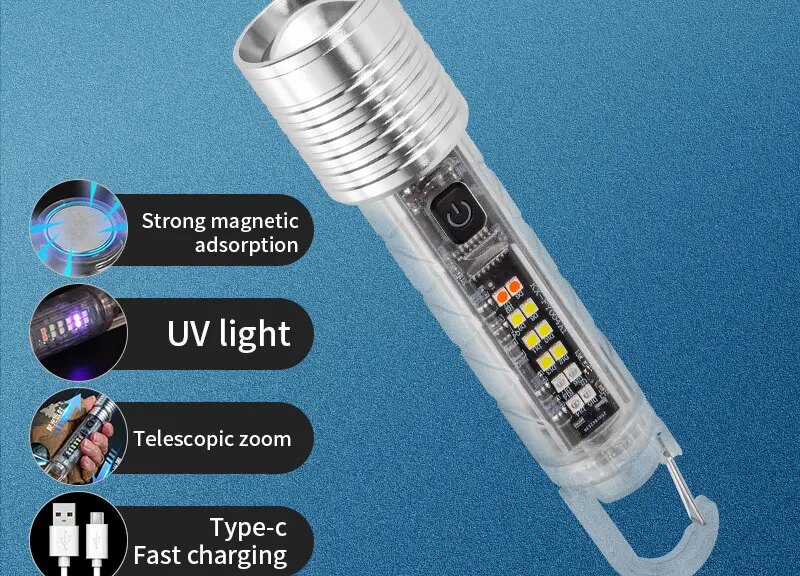 Portable LED Strong Light Flashlight Mini Keychain Rechargeable Zoom Torch Long Range Outdoor Camping Lantern With Magnetic