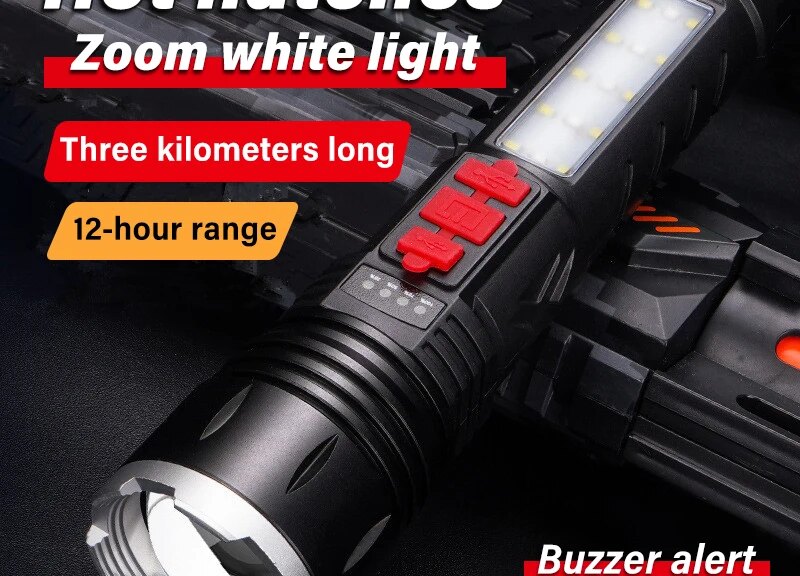 Price: Description: Product parameters: Model: A56 flashlight Light source: the main lamp laser beads, side lights white, red, blue, UV beads Battery: built-in 18650 lithium battery Shell material: ABS + aluminum alloy Gear: front light strong light – low light – flash – front light strong light + side light white – front light strong […]