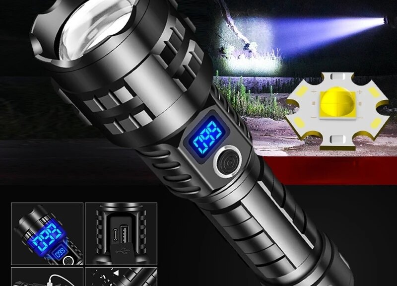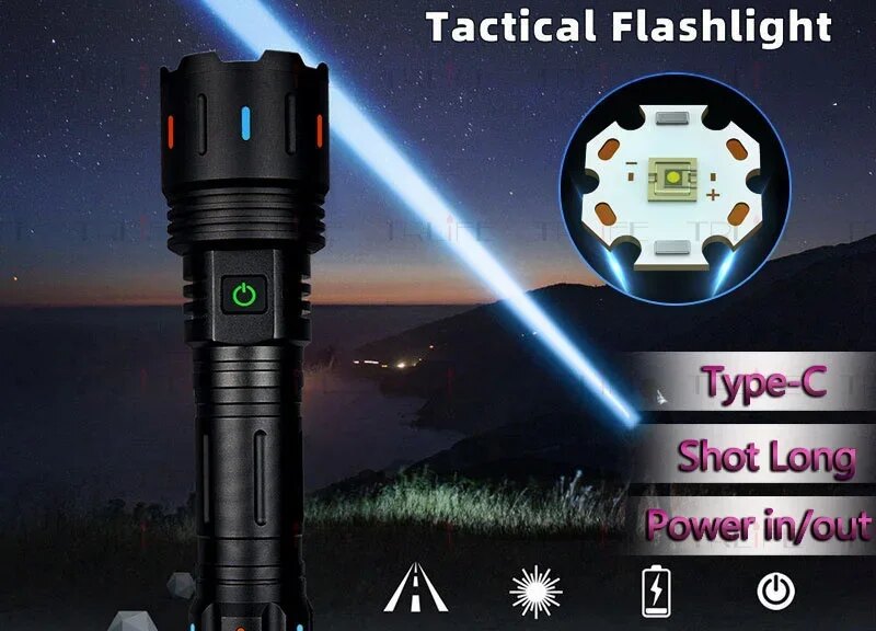 Powerful LED Flashlight 100000 Lumen Tactical Flashlights Rechargeable USB 18650 Waterproof Zoom Fishing Hunting LED Flashlight