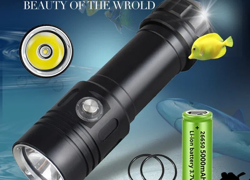 IPX8 Waterproof Underwater Lantern 100M XM-L2 LED Scuba Diving Flashlight Power 5000LM 4Mode Dive Light By 5000mAh 26650 battery