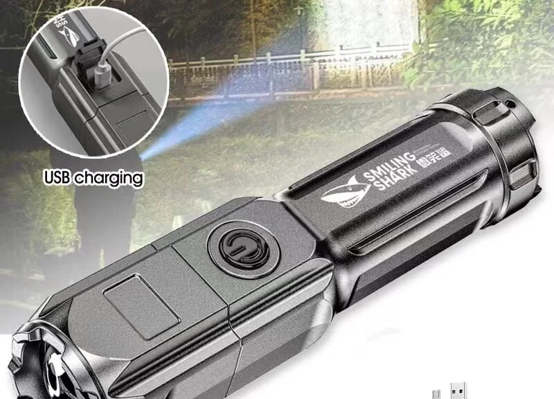 LED Powerful Flashlight Rechargeable Tactical Flashlights Lantern Zoom Long Range 1500m Torch Built In Battery with COB light