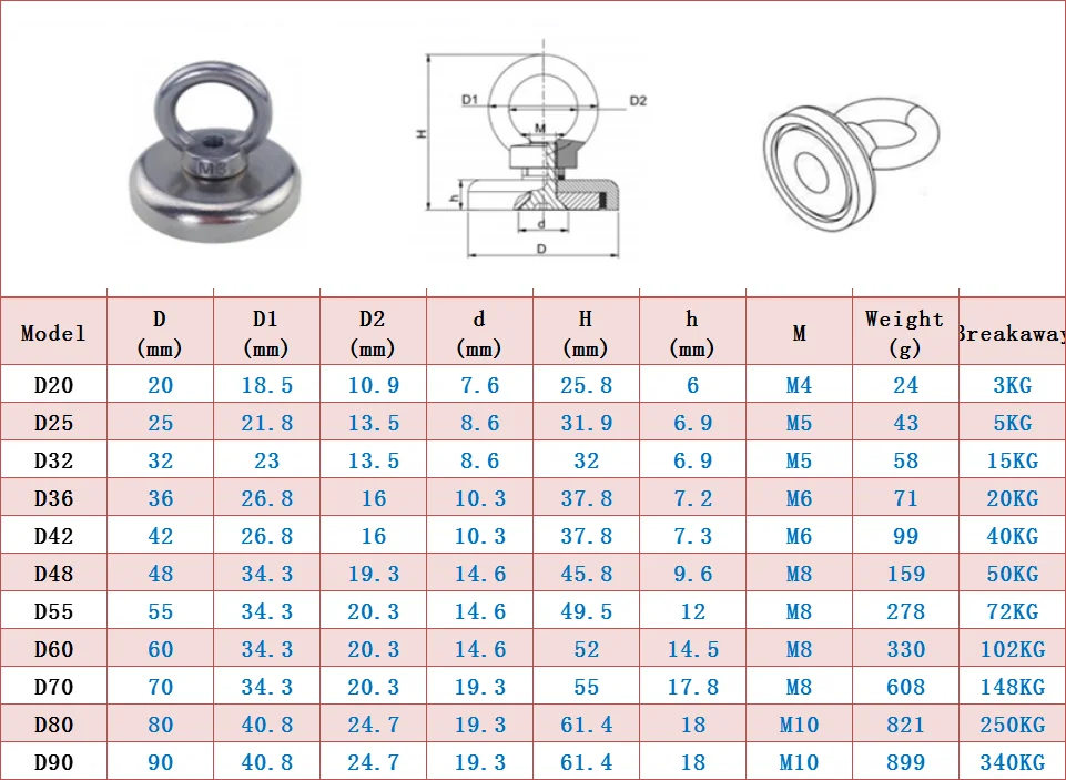 1. Magnetic testing is carried out under ideal conditions with professional equipment in the factory workshop. Therefore, the tension values in the table are for reference only. In the process of actual use, the ideal tension can not be reached. Please choose and buy according to your actual situation!!!