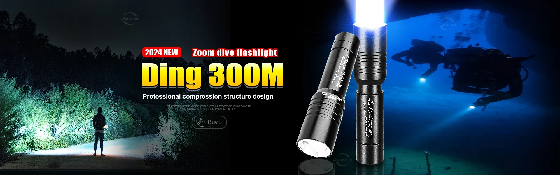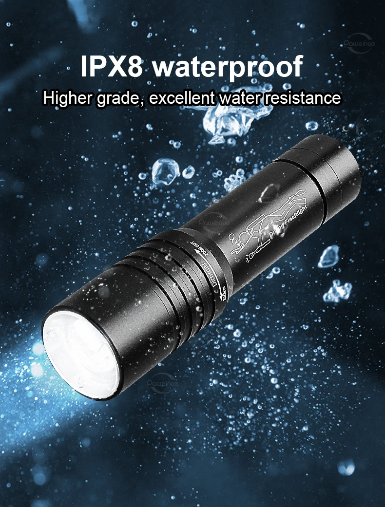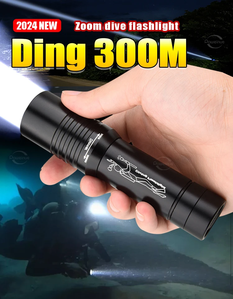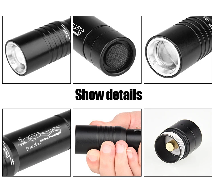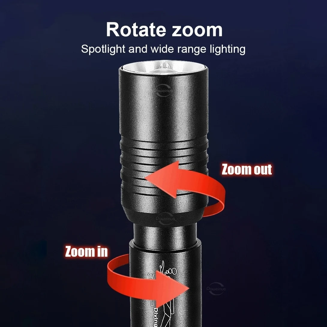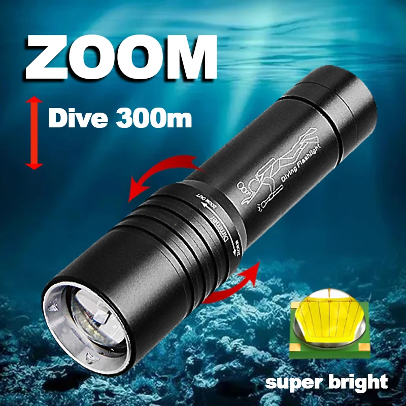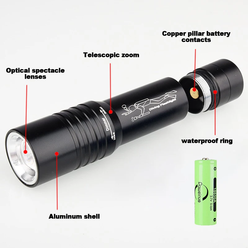 Diving Flashlight IP6 Highest Waterproof Telescopic Zoom Rating Professional Diving Light Powered 18650 Battery With Hand Rope