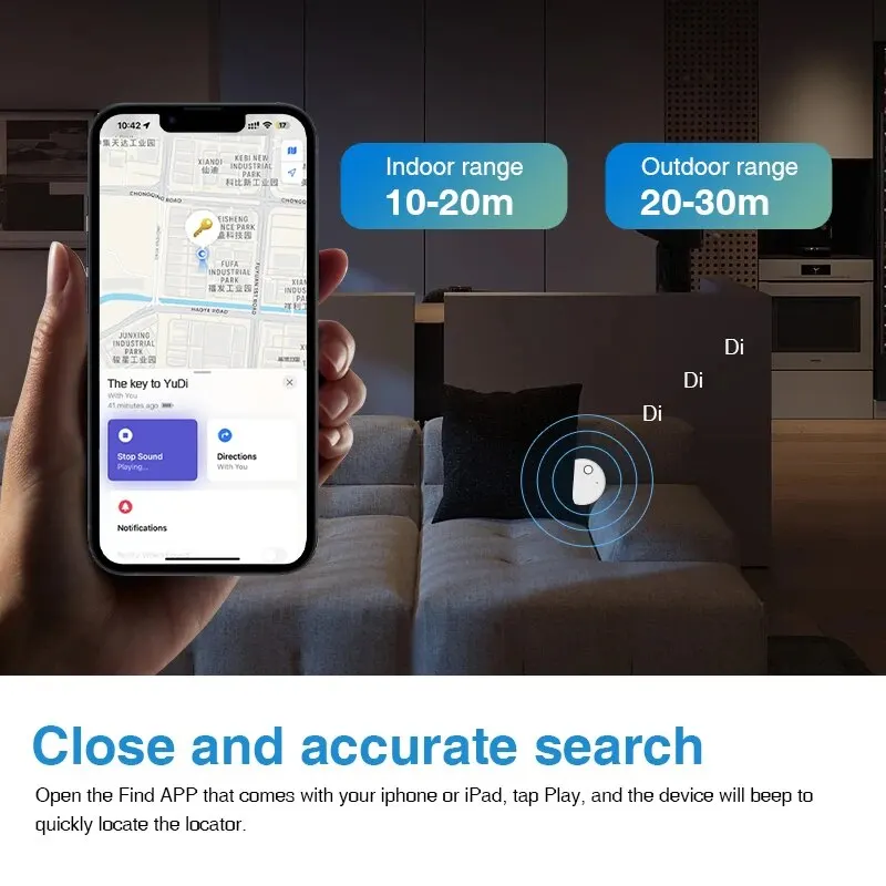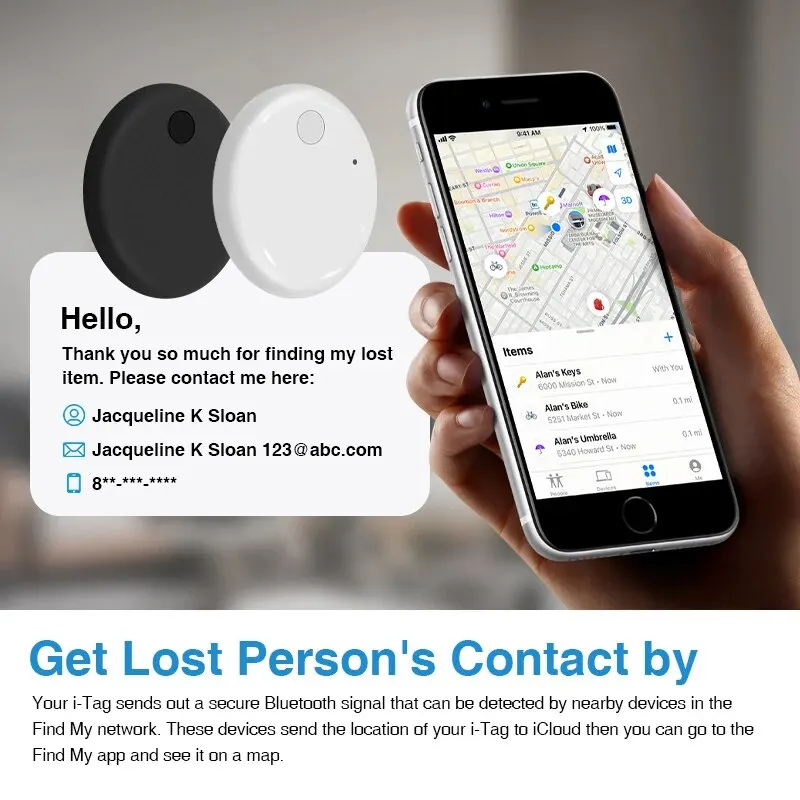 2.Your i-Tag sends out a secure wireless signal that can be detected by nearby devices in theFind My network. These devices send the location of your i-Tag to iCloud then you can go to theFind My app and see it on a map.