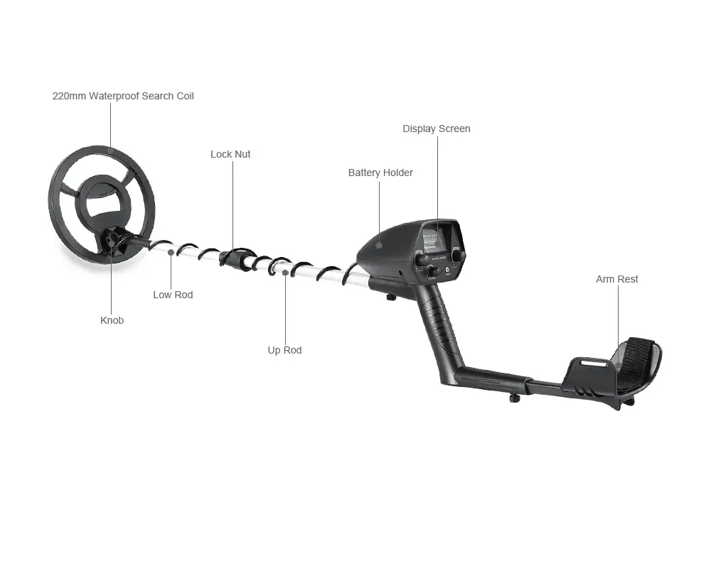 Adjustable metal detector height – Adjust detector length for comfortable use.