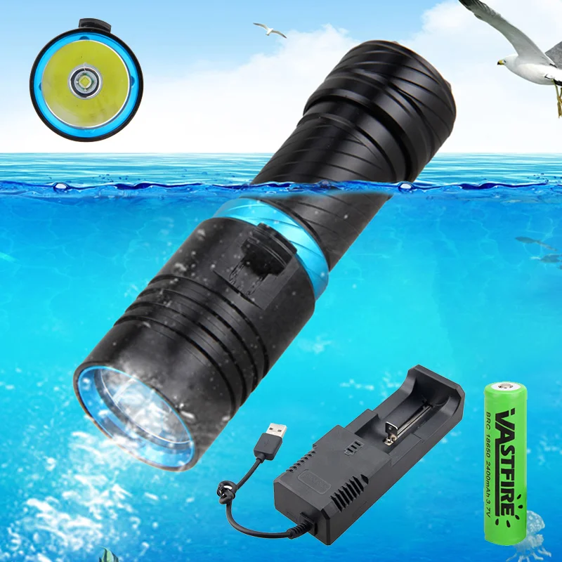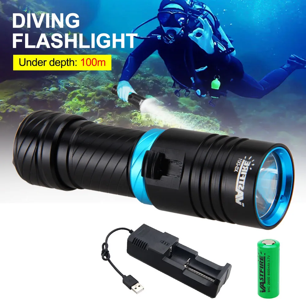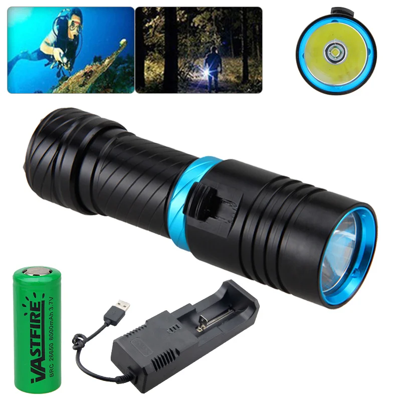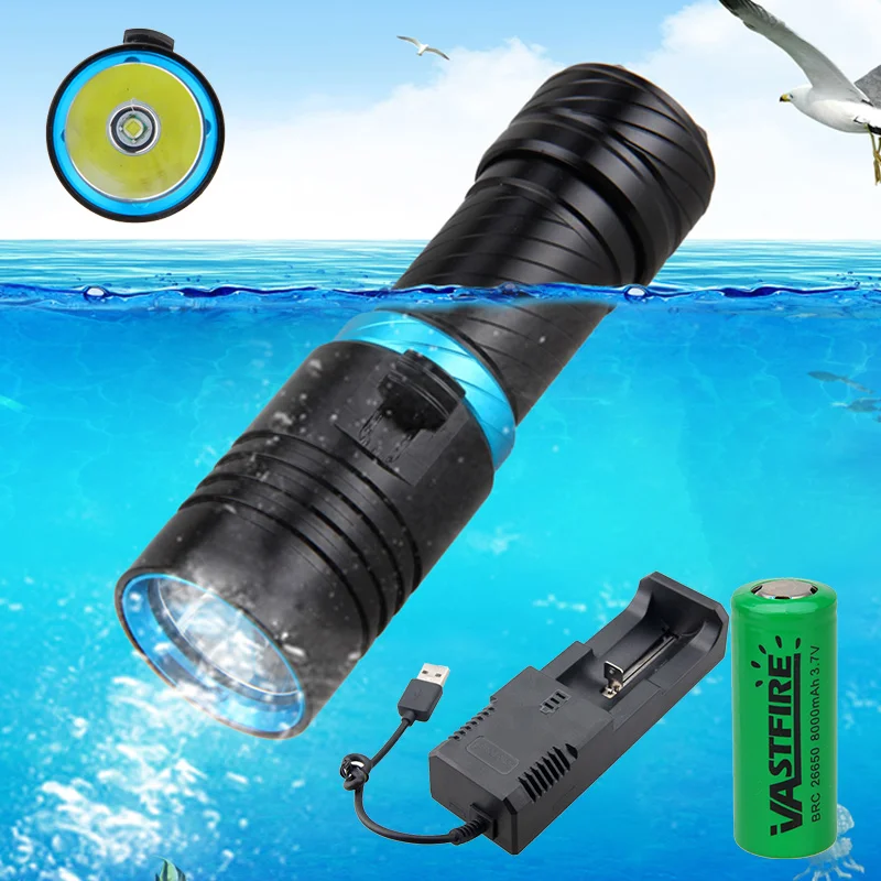 High Power Diving Flashlight IP68 Highest Waterproof Rating Professional Dive Powered by 18650/26650 Battery With Single Charger