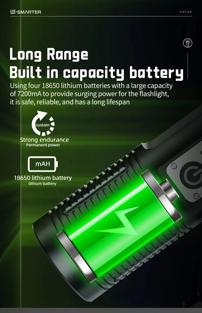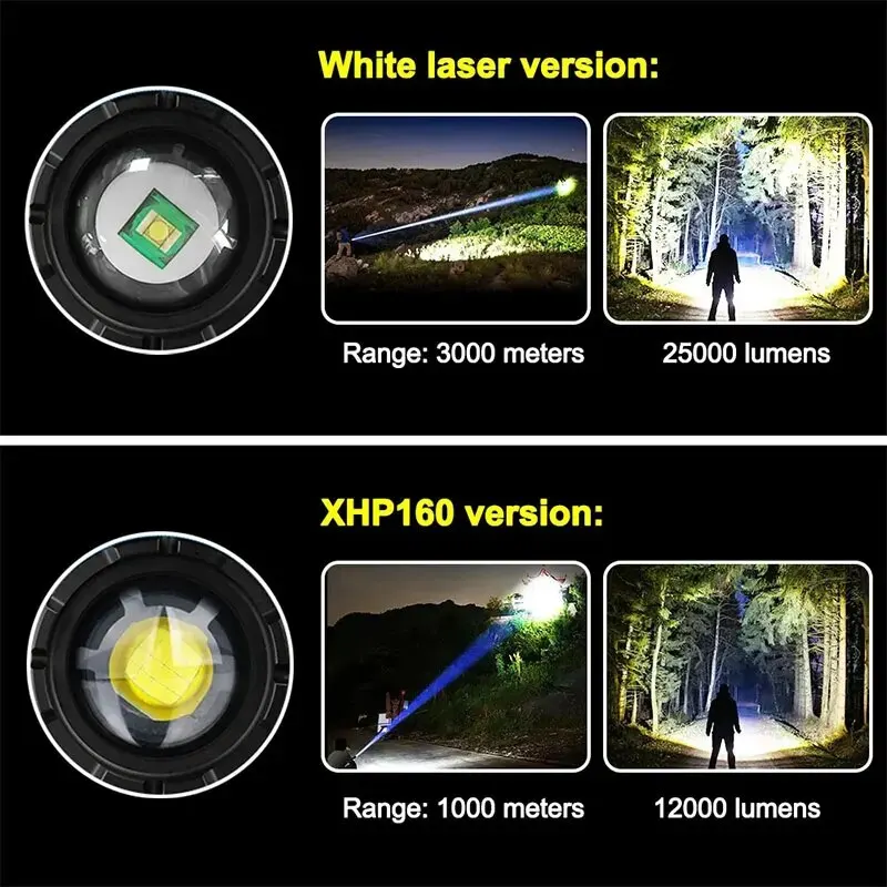 Lumens: XHP160 model: up to 12000 lumens; white laser model: up to 25000 lumens
