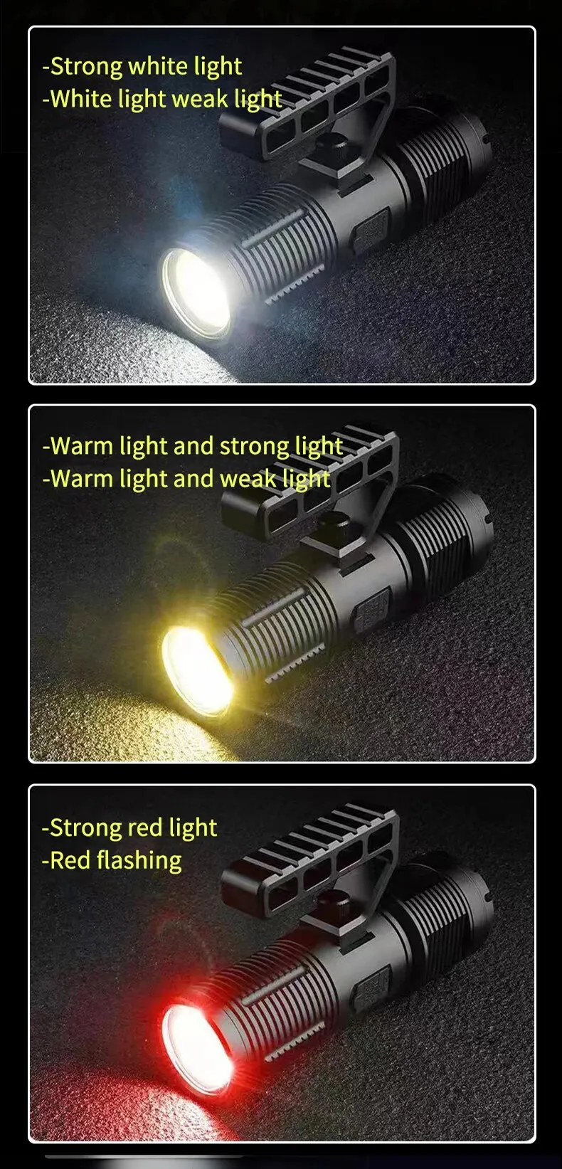 (Long press to switch) Tail light: white strong light – white weak light – yellow strong light – yellow weak light – red light – red light flashing