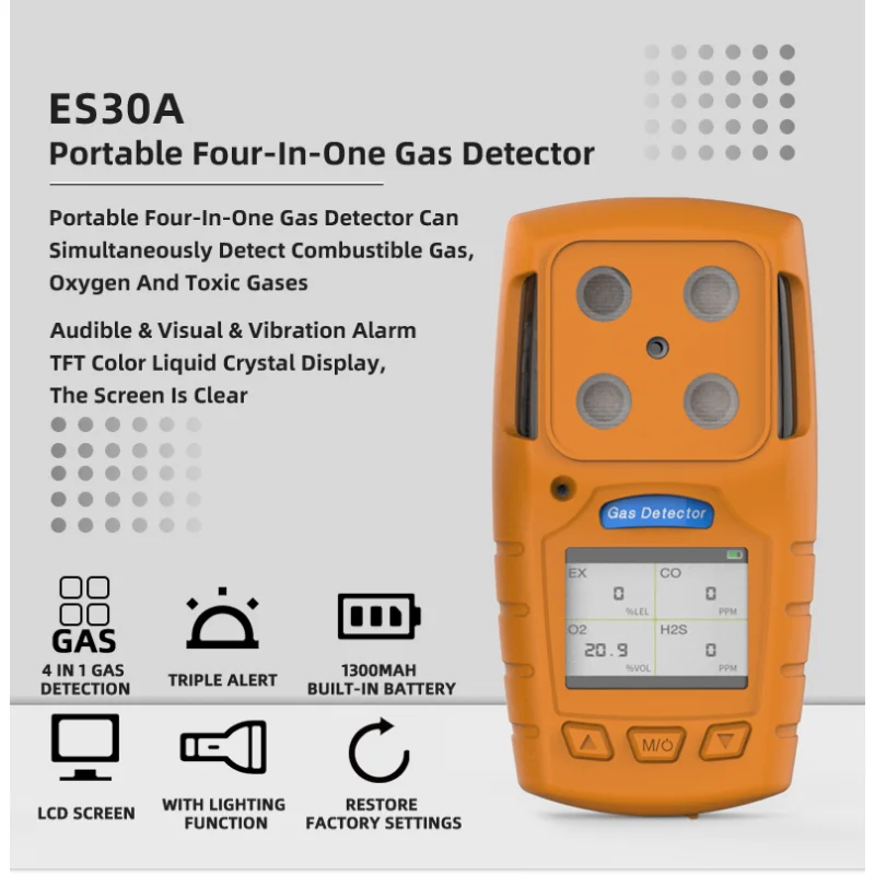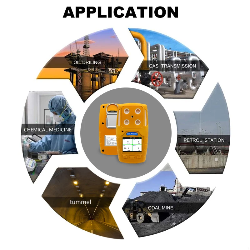 Detection gas: combustible gas (methane), oxygen, carbon monoxide, hydrogen sulfide Detection principle: Electrochemistry (oxygen, carbon monoxide, hydrogen sulfide) Catalytic combustion (combustible gas, methane) Measuring range: oxygen 0~30%VOL, carbon monoxide 0~500ppm Methane 0~100% LEL, hydrogen sulfide 0~100ppm Resolution: oxygen 0.1%VOL, carbon monoxide 1ppm Methane 1% LEL, hydrogen sulfide 1ppm Accuracy: ±3%F.S Response time: T90<30S Preheating time: 90S |