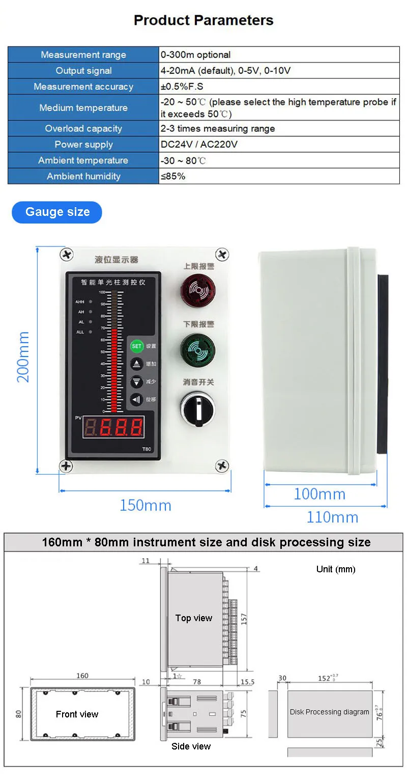 Input level gauge sensor water level controller water tank oil tank pressure level gauge static pressure level transmitter