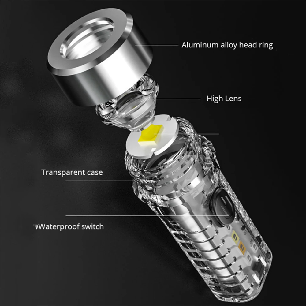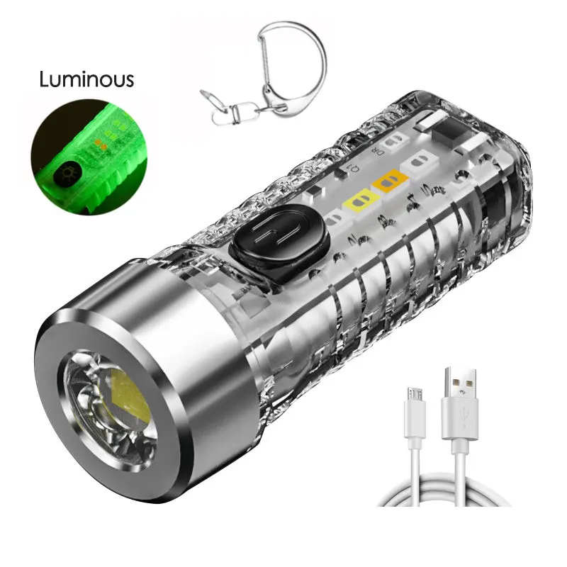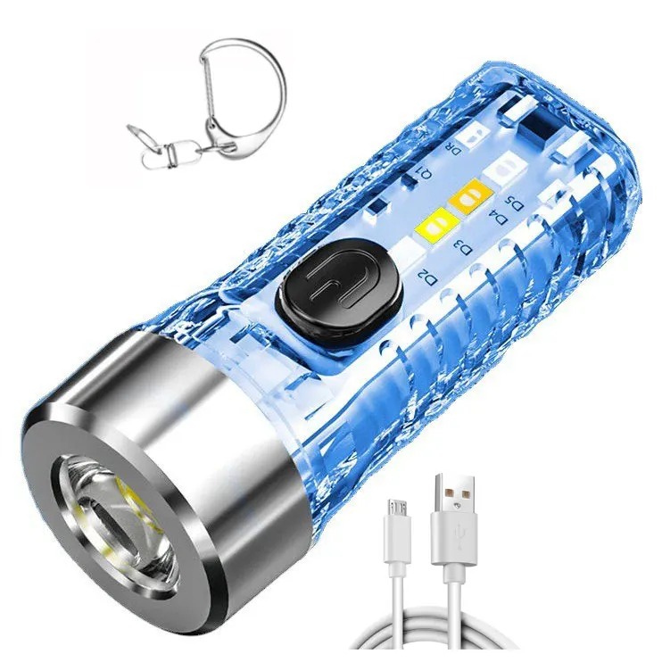 KENSUN Mini Keychain Flashlight USB Rechargeable Torch Strong Lights Lantern With Multicolor Side Outdoor Lamp Built In Battery