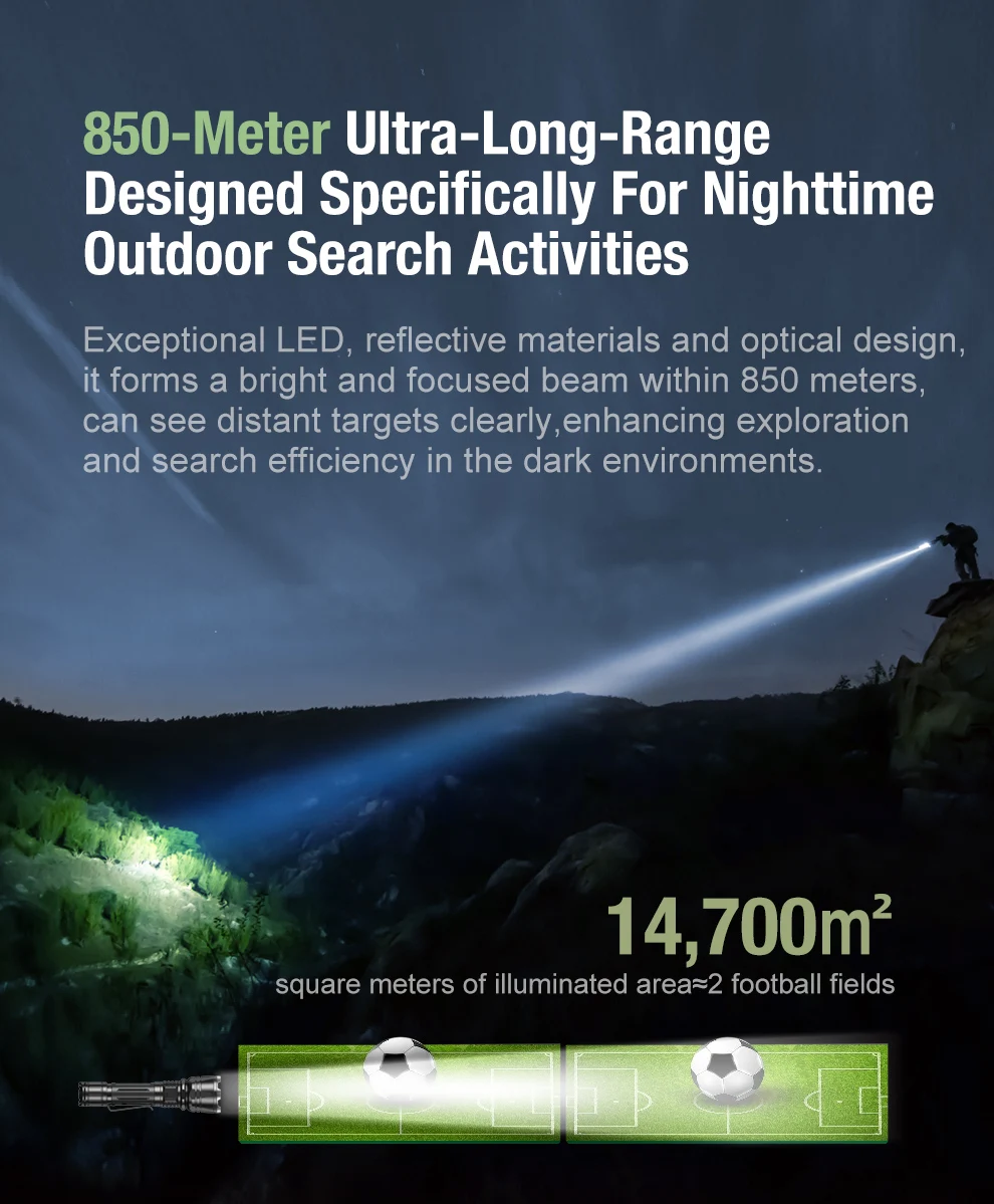 1.850-Meter Ultra-Long-Range Designed Specifically For Nighttime Outdoor Search Activitie Exceptional LED,reflective materials and optic