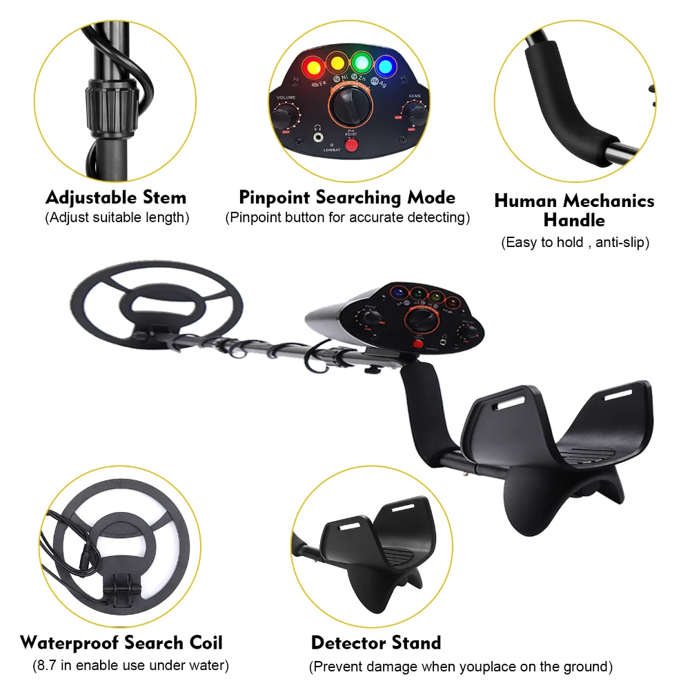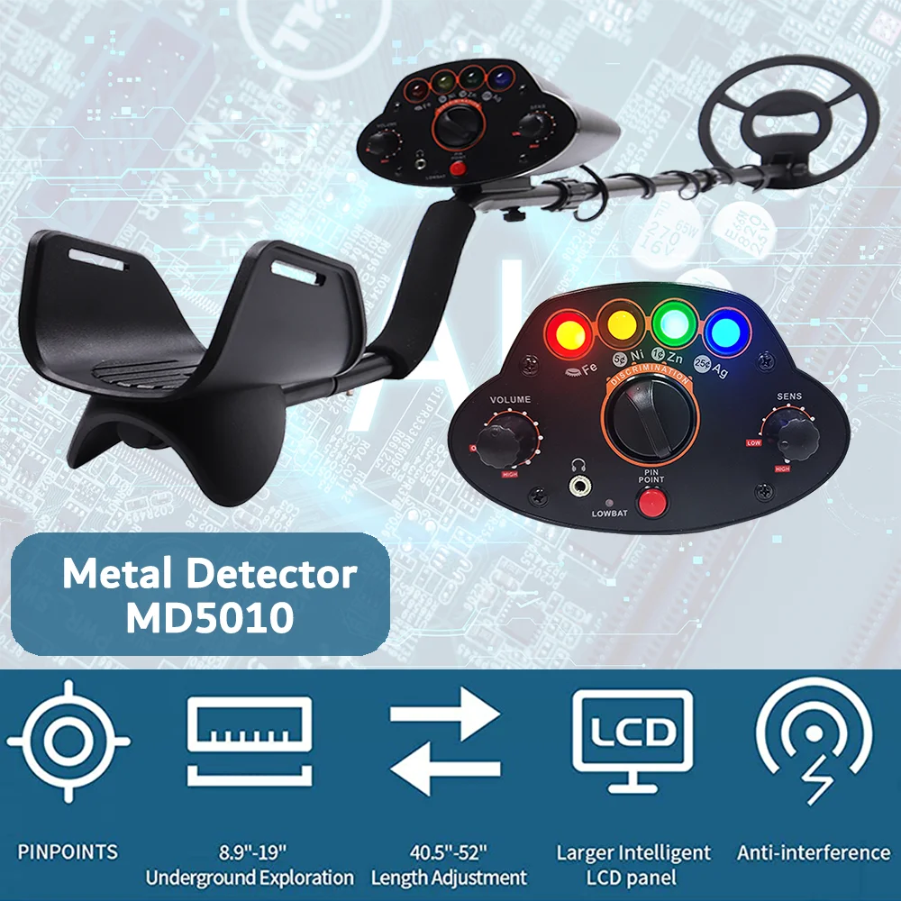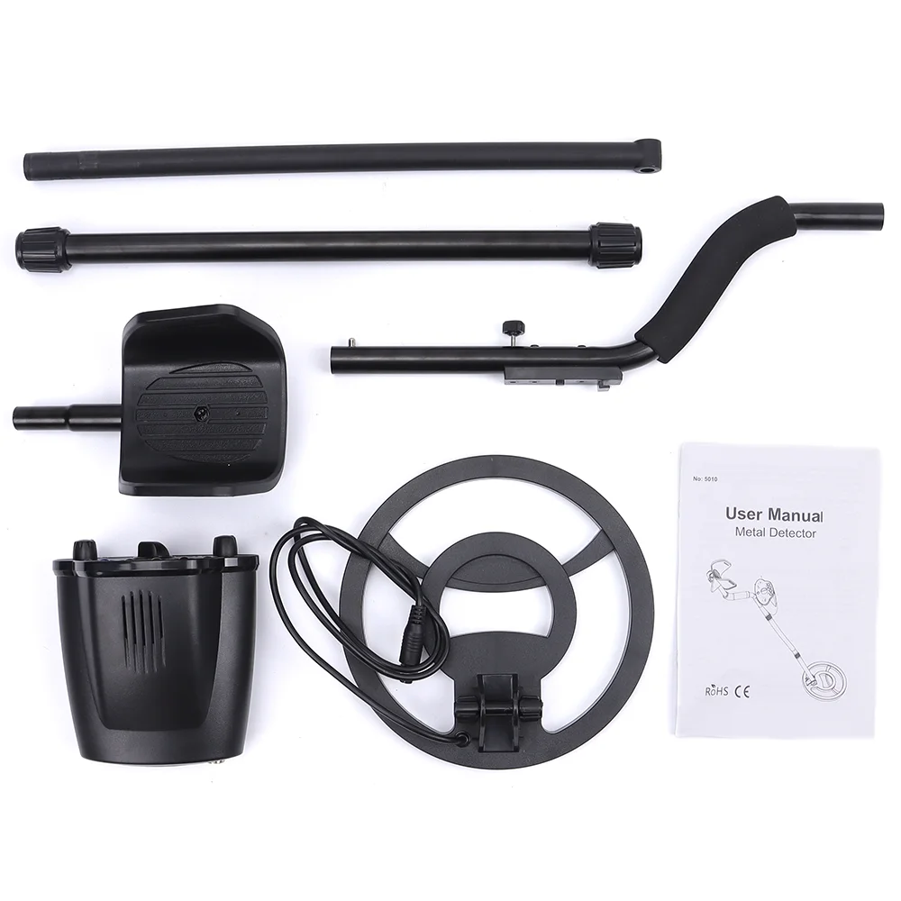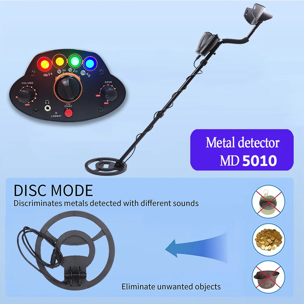 [Easy to assemble and use] Our Metal detector can be easily assembled and used just by connecting the coil and the control box through the adjusting rod. Forget about the complex LCD screens and functions. Update the MD5010 Metal detector to emit beep and flash light of corresponding color when locating metal. The detection depth can reach 6 inches (approximately 15.2 centimeters), used for placing small coins and metal objects.