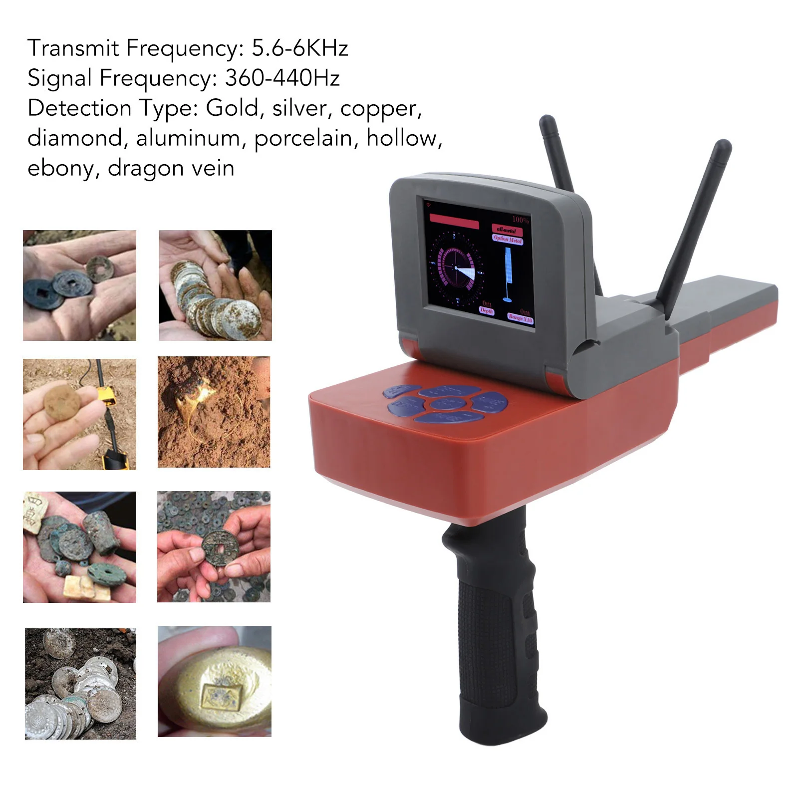 Detection Type: Gold, silver, copper, diamond, aluminum, porcelain, hollow, ebony, dragon vein