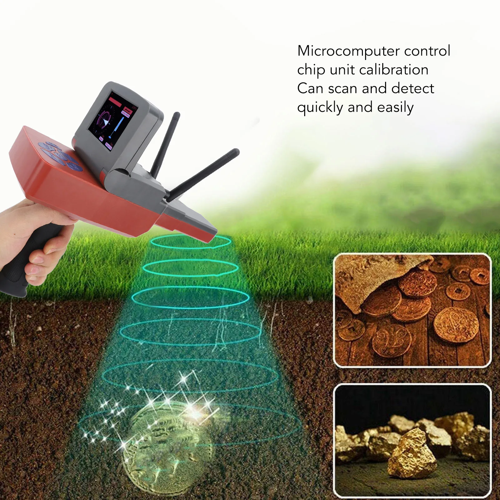 4. MICRO COMPUTER CONTROLLED CHIP UNIT CALIBRATION: The metal detector is calibrated with a microcomputer controlled chip unit, and the self checking system allows for quick and easy scanning and detection. This greatly improves the working efficiency of geocache enthusiasts.