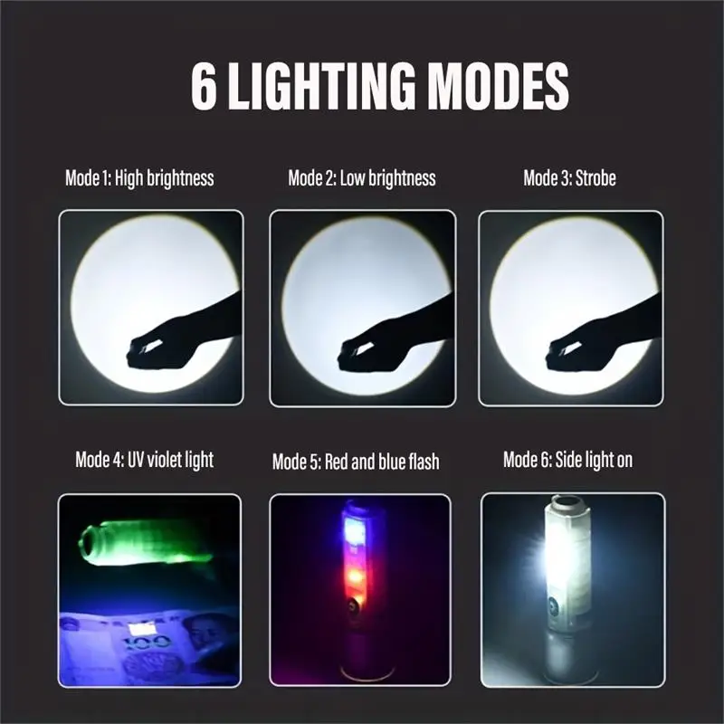 Features Small and lightweight appearance, convenient to carry with pen clip, tail rope, light tail, magnet designed to adhere to the iron without falling, free hands, can be used as a work light, multiple light sources, suitable for multi-scene lighting