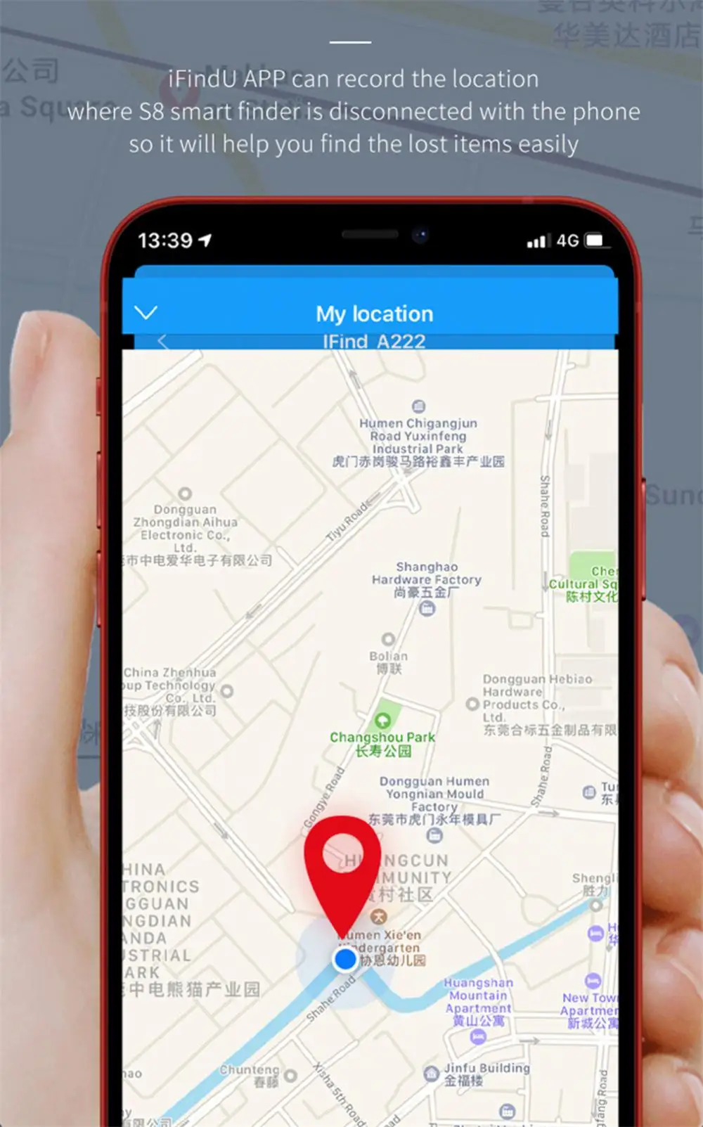 2. Intelligent anti-lost and find objects: Automatically record the lost location of the item. When the device is disconnected from the mobile phone, the software map will automatically record the location and find the location record through the map. When the effective range is reached, the device and the mobile phone will automatically reconnect, click Find the button to easily retrieve lost items.