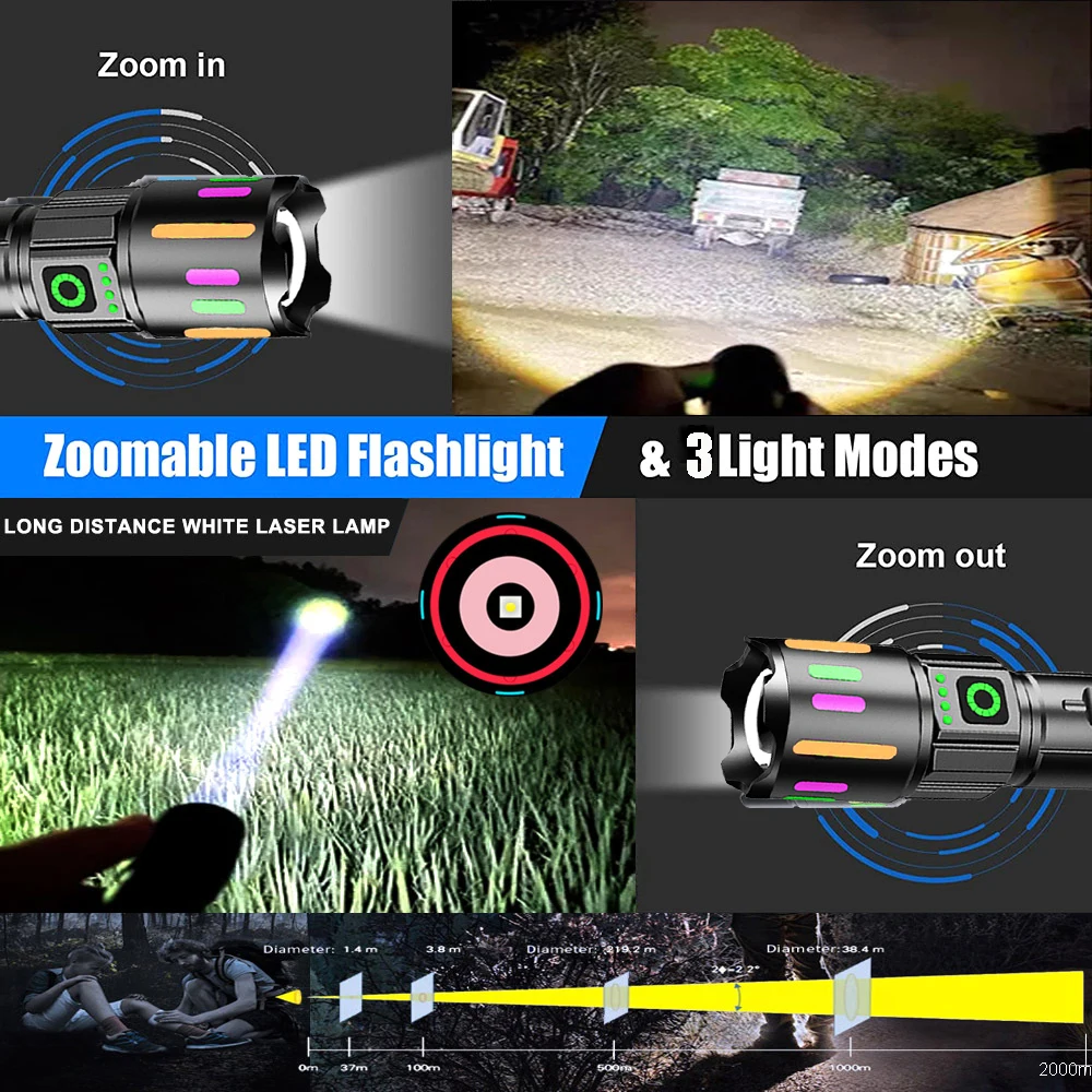 Most Powerful LED Flashlight Rechargeable GT10 LED Flashlights High Power Zoom Torch Long Range Tactical Lantren Camping