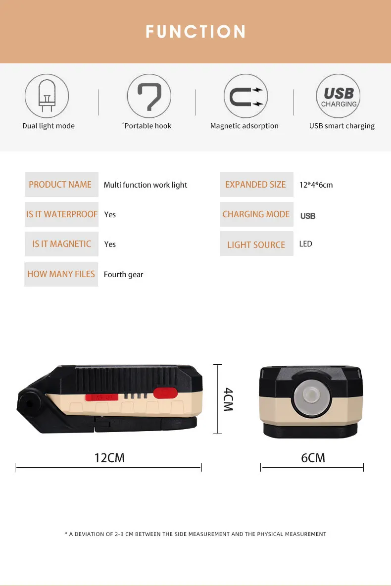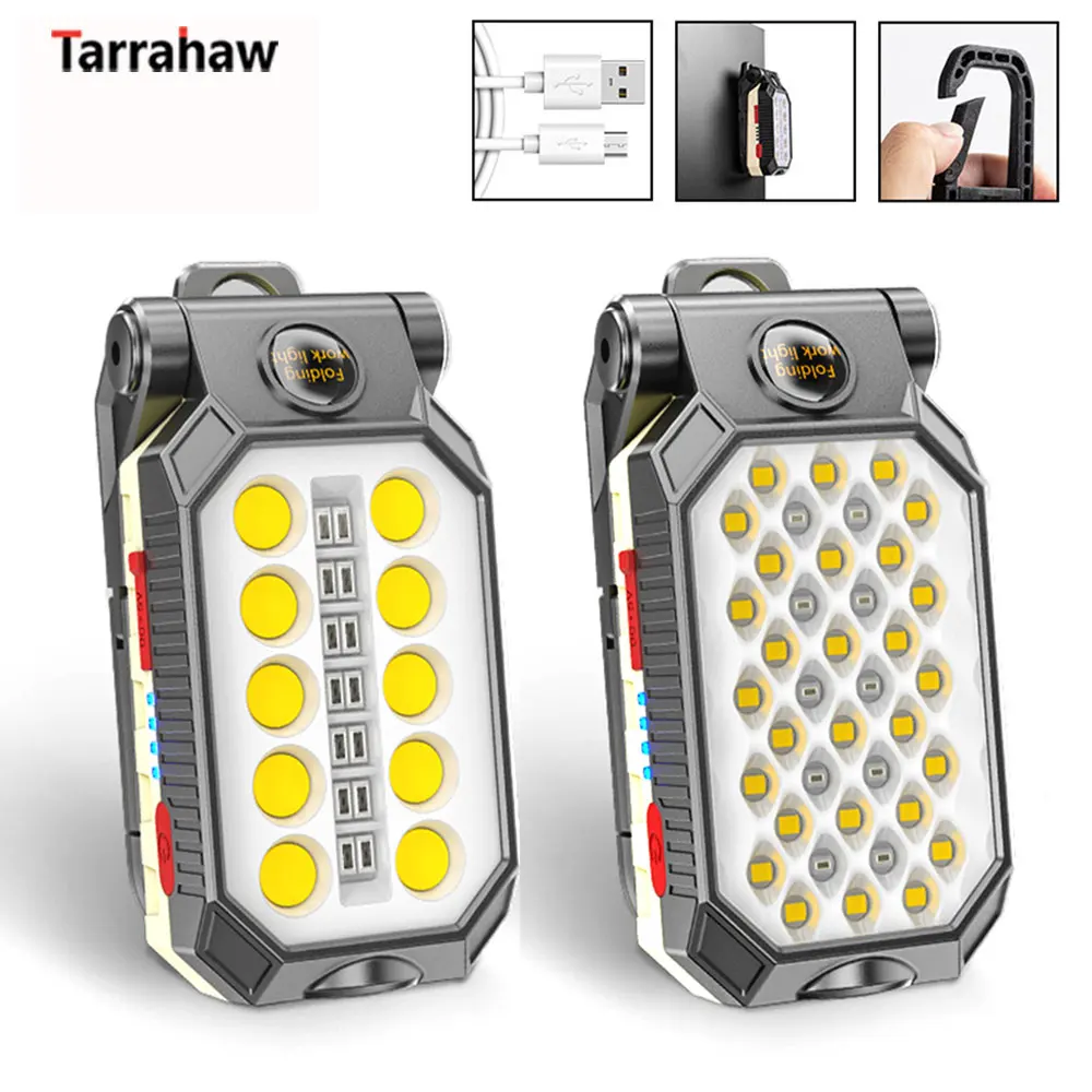 Multifunction USB Rechargeable COB Work Light Portable LED Flashlight 5Modes Adjustable Waterproof Camping Lantern Magnet Design