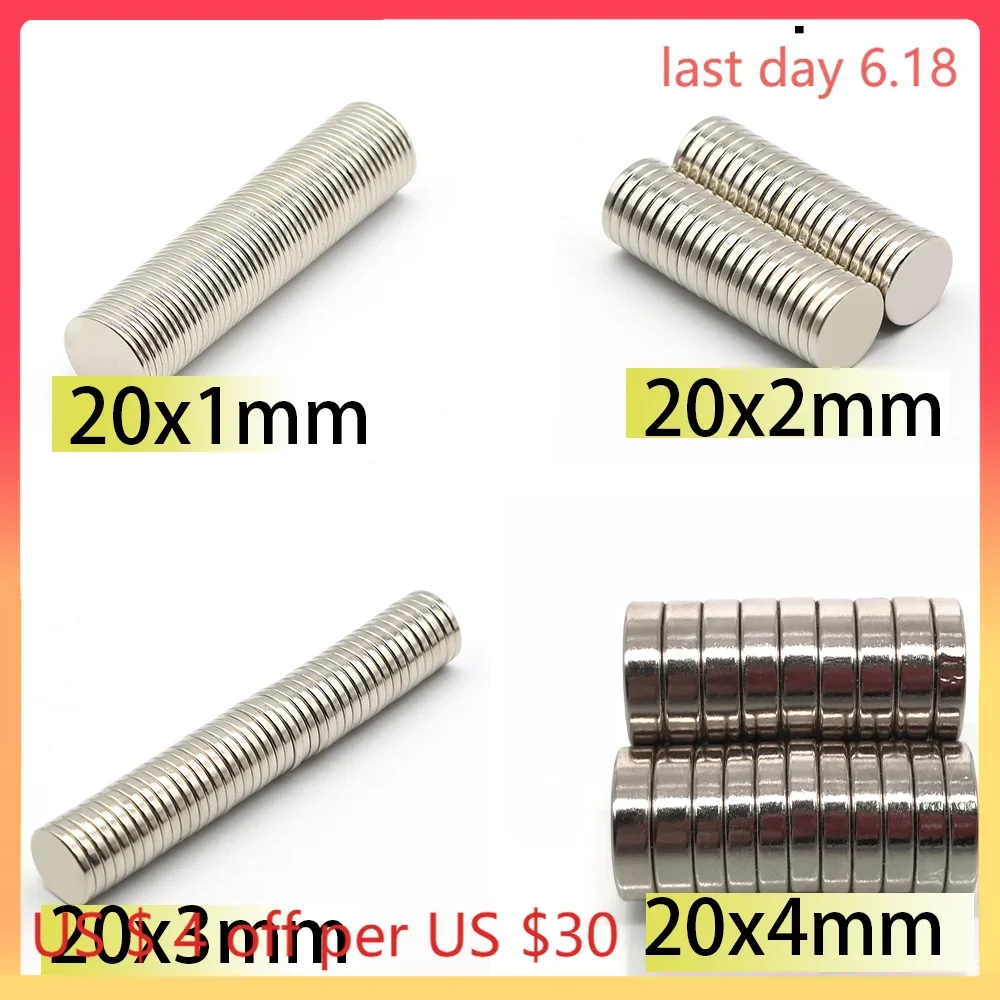 N35 20×1 20×2 20×3 20×4 Magnet N35 Neodymium Magnets Nickle Coating 20x2mm 20x3mm Search Magnetic Fridge DIY 20x4m