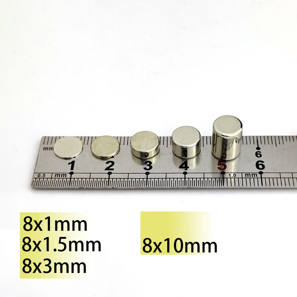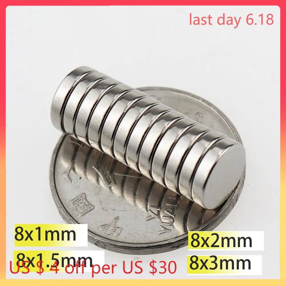 100/200pcs 8x1mm 8×1.5mm 8×2 8×3 Magnet Superpower8*2mm N35 Neodymium Magnets Nickle Coating Search Magnetic Fridge DIY Crafts Aimant