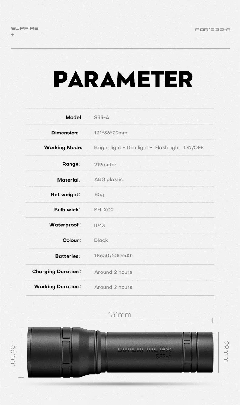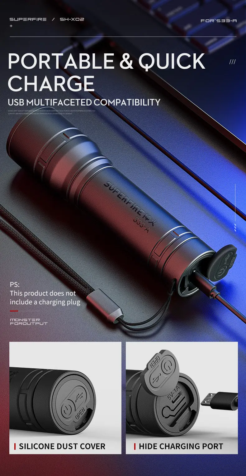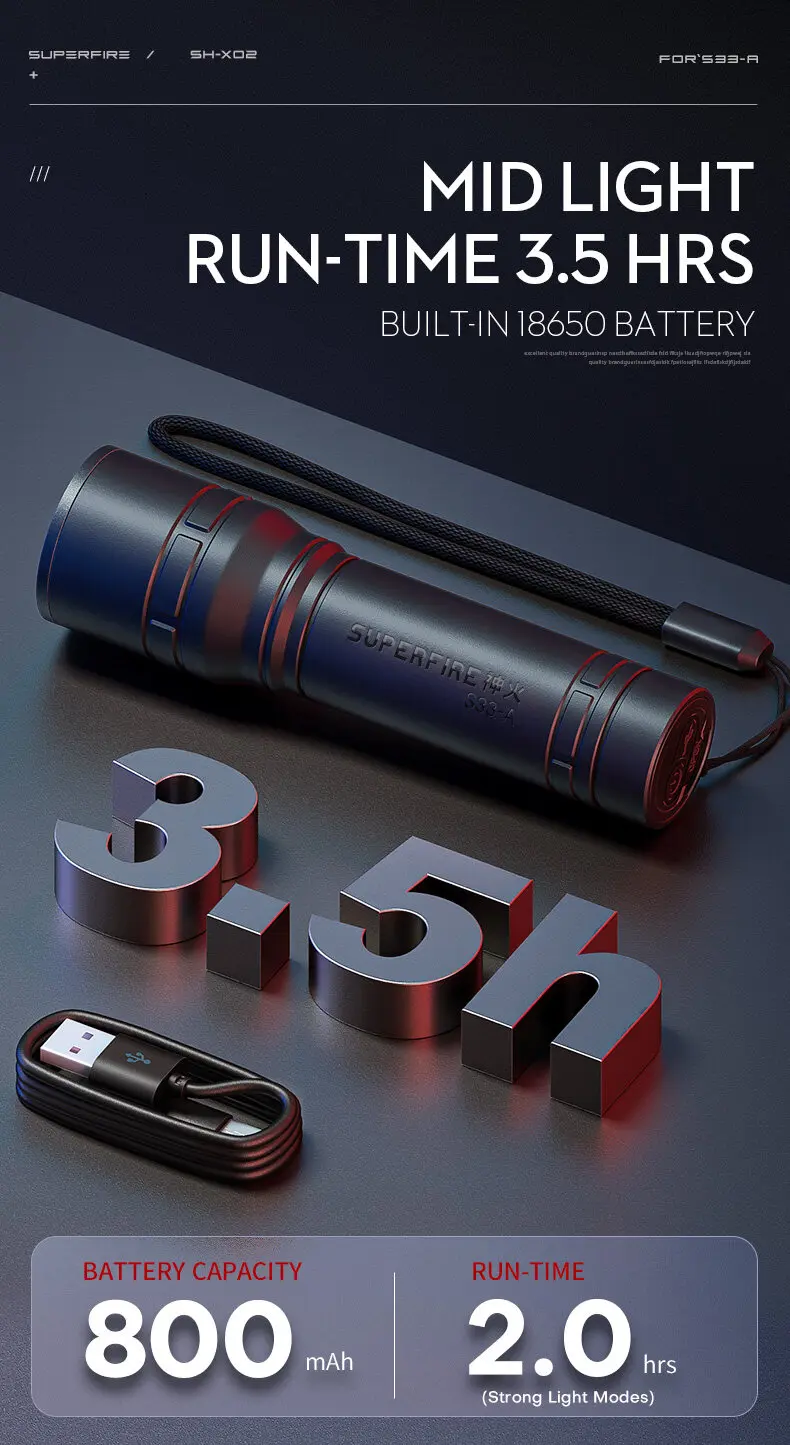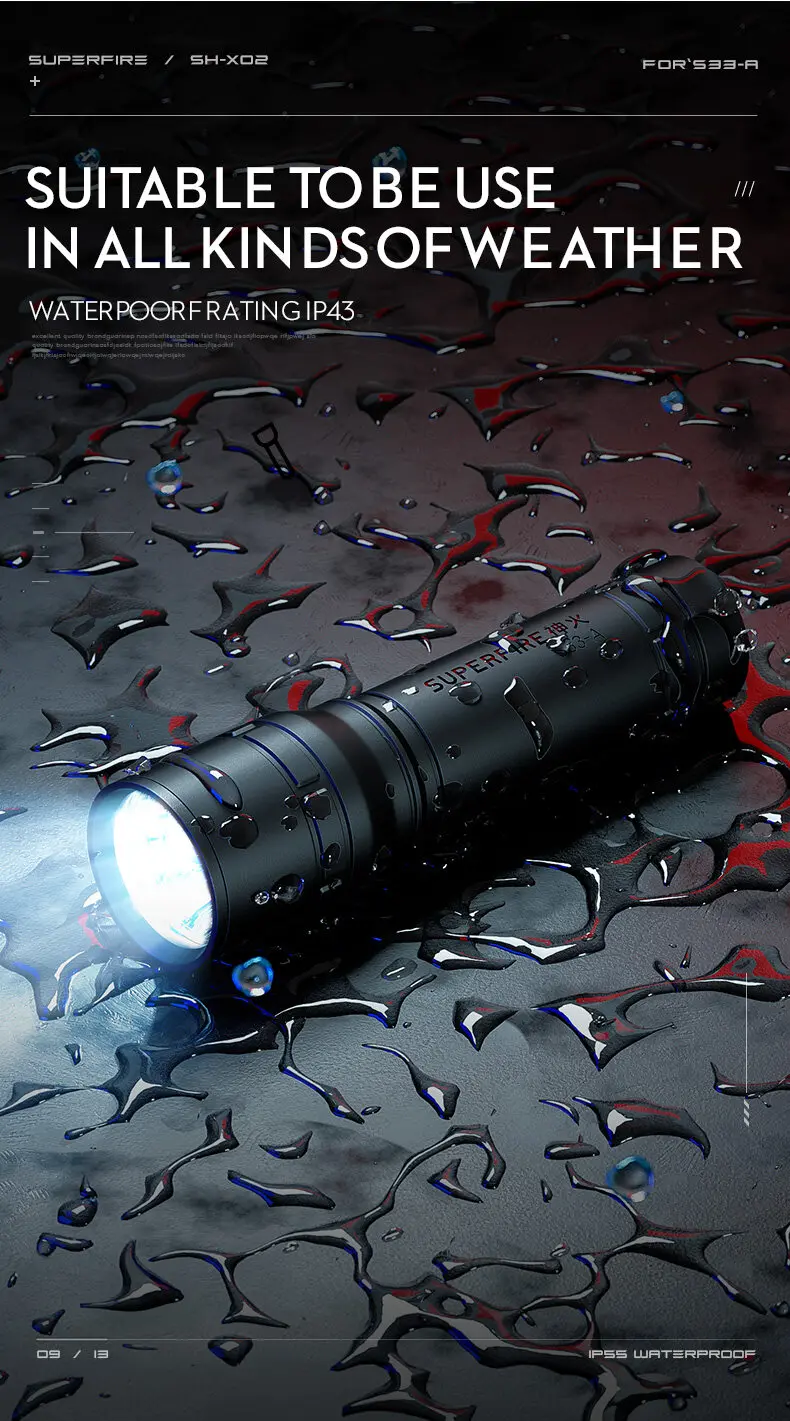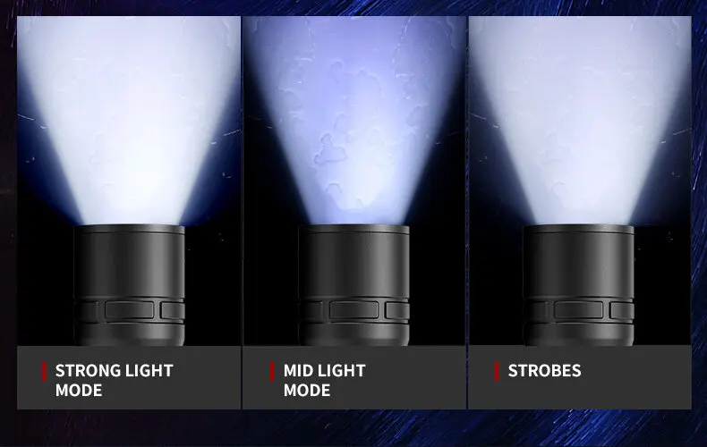 Press the switch to adjust gears (high light-low light-strobe flash-OFF). Press and hold any gear for about 3 seconds to open the SOS