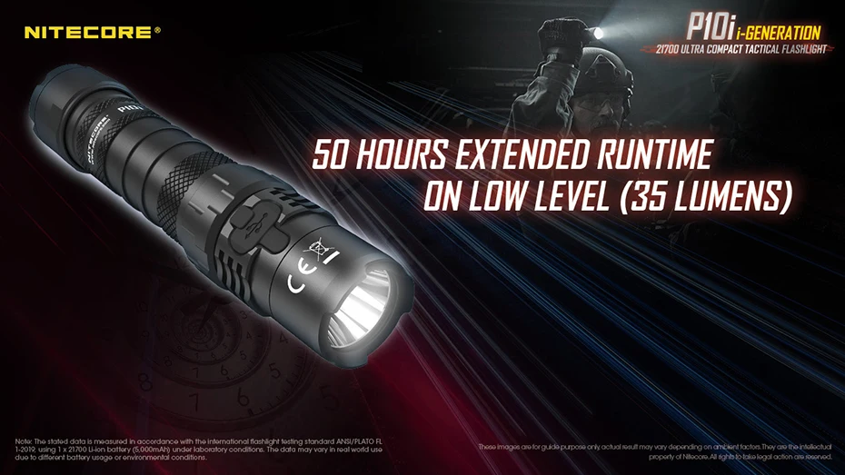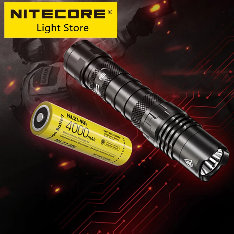 Nitecore P10i 1800 Lumen One-button Tactical Flashlight Small Straight Self Defense USB typeC Rechargeable Torch NL2140i Battery