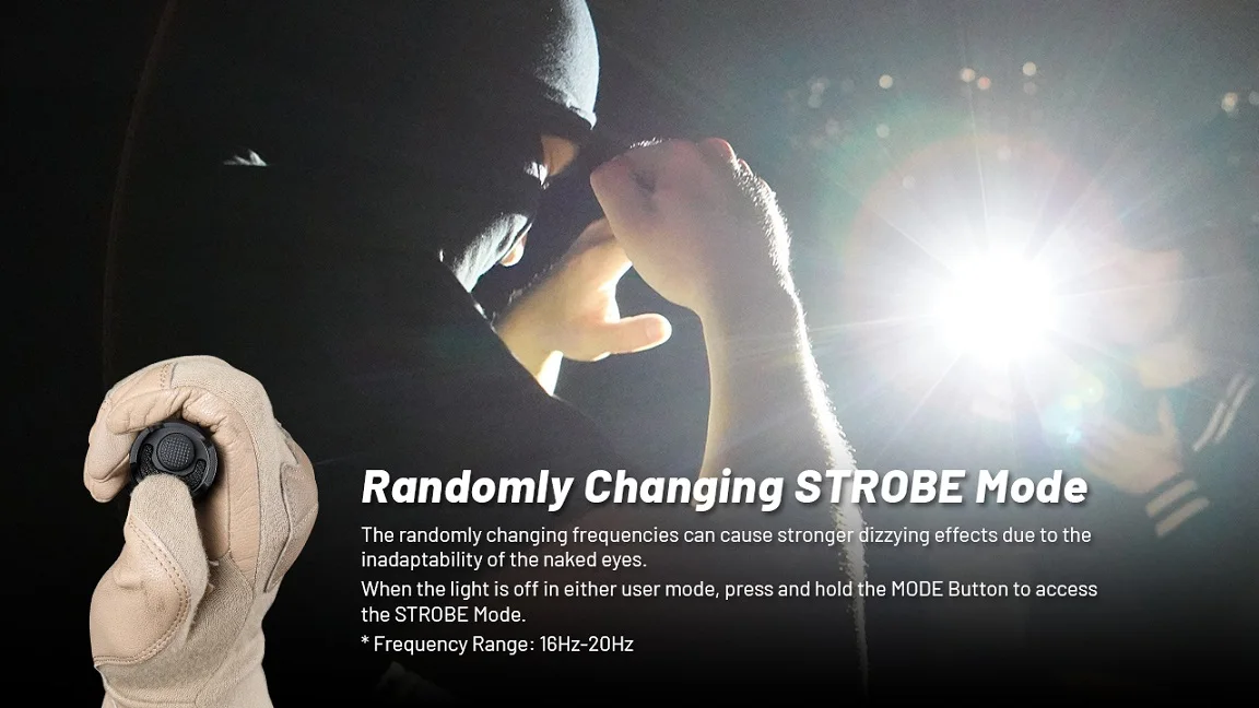 8.STROBE Mode uses randomly changing frequencies for stronger dizzying effects