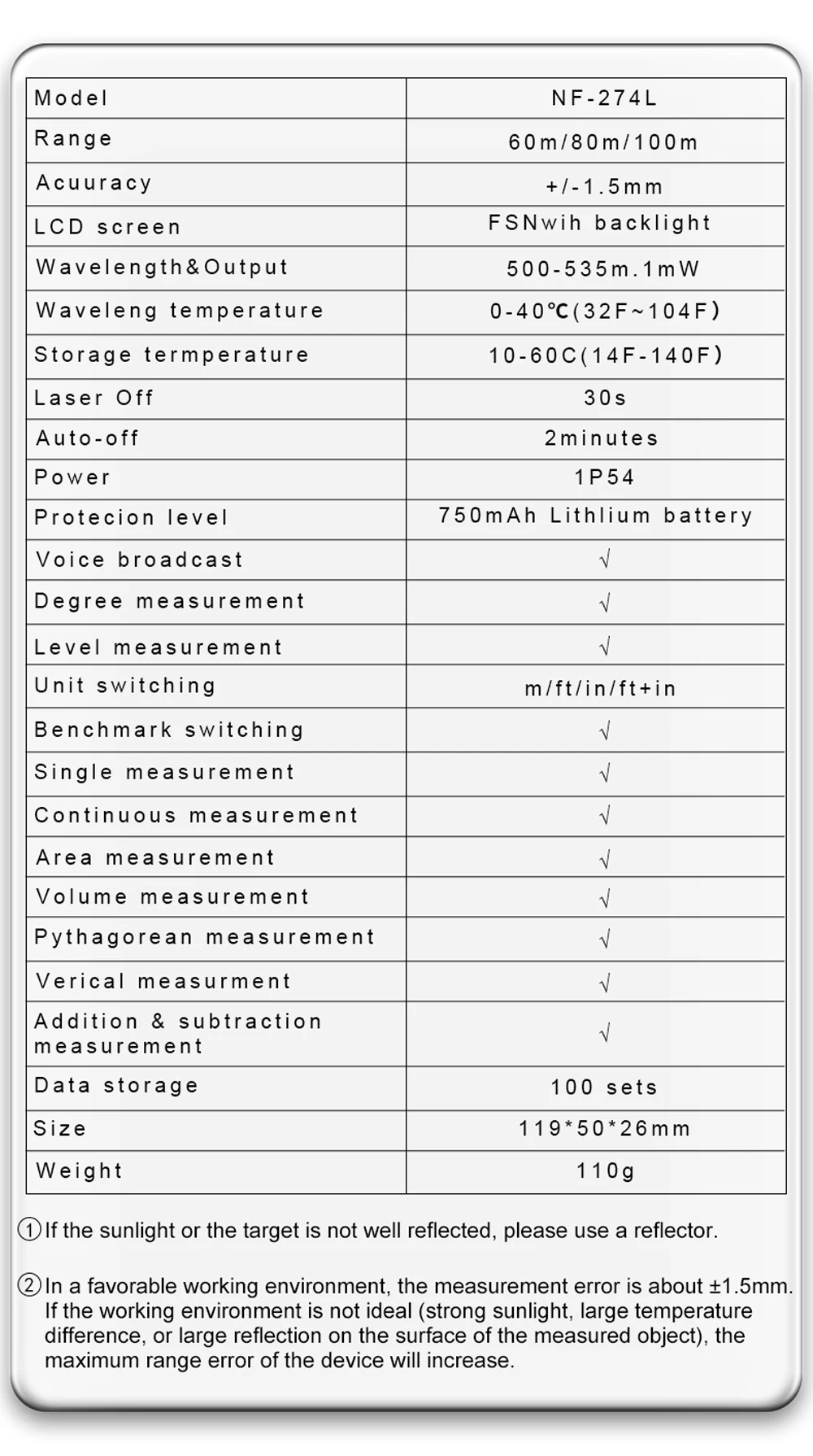Laser Auto-off: 30s