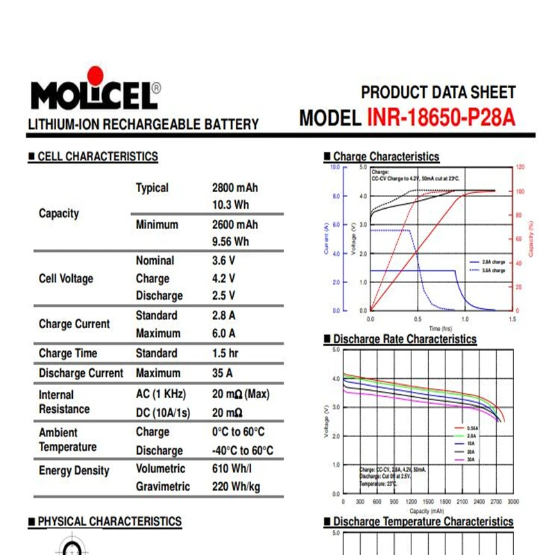 ☀Quality :100% Original Molicel P28A 18650 Battery