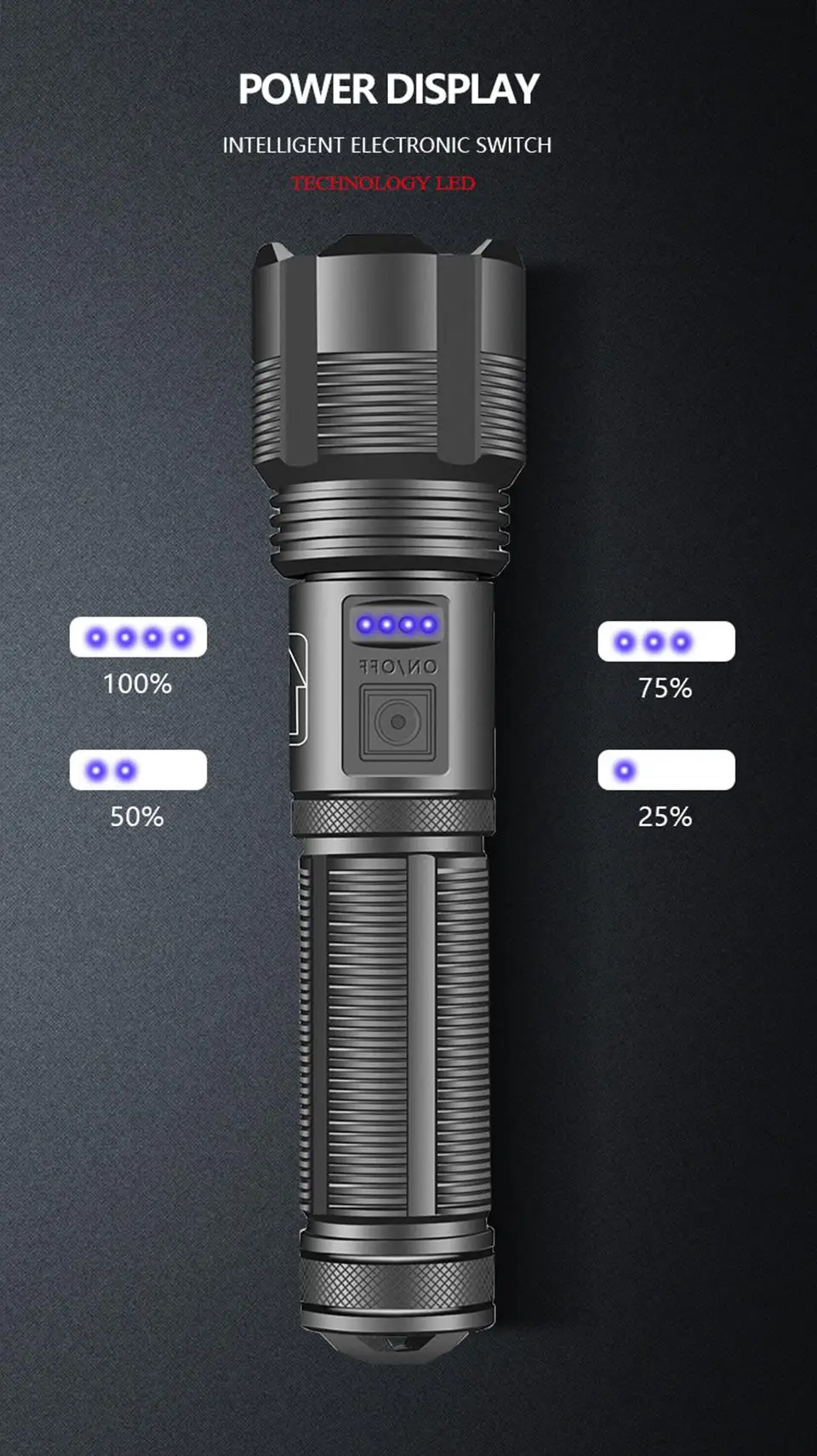 Power disply : 100%-75%-50%-25%