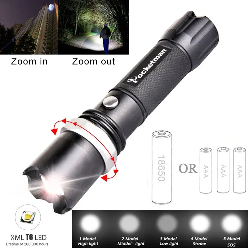 HIGH POWER BRIGHTNESS: High Lumens LED makes our flashlight 10 times brighter than old incandescent flashlights. Runs on either a 18650 lithium ion battery or 3 AAA batteries.
