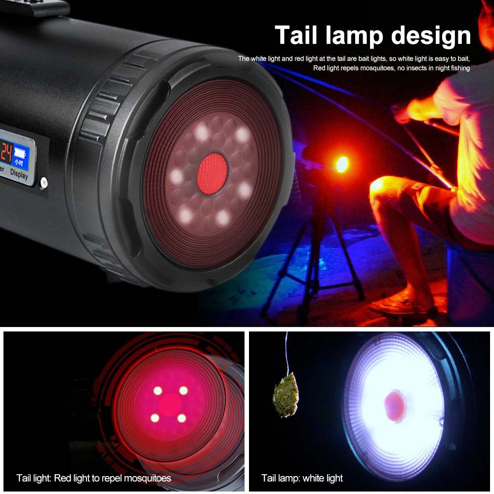 (5) The white light and red light of the tail light are bait lights, soft white light, easy to bait, red light mosquito repellent tail light, night fishing without insects.