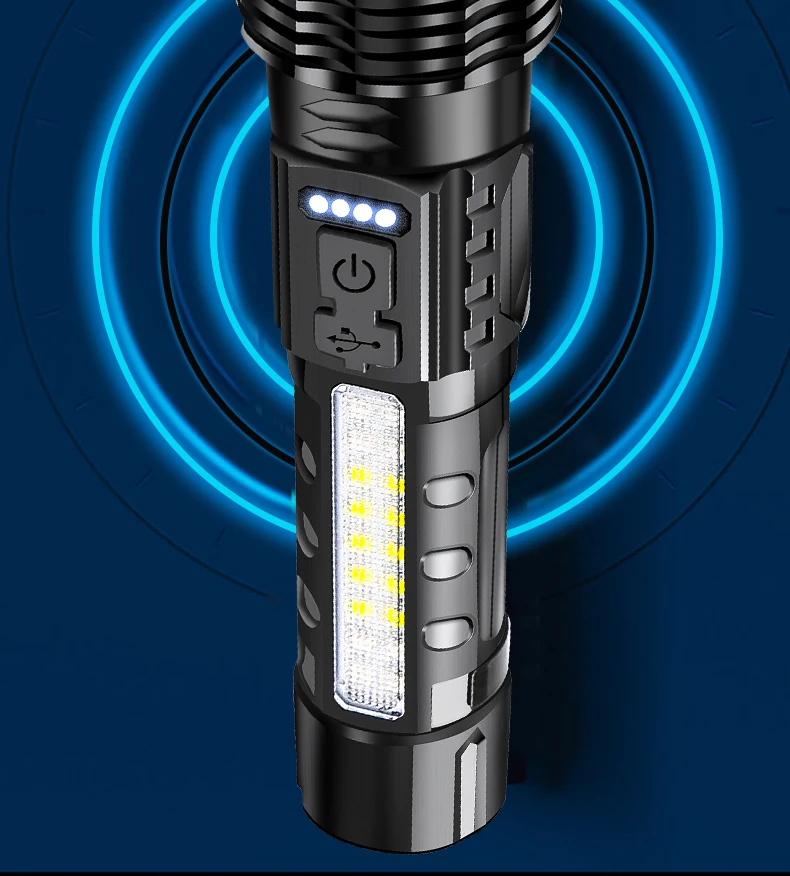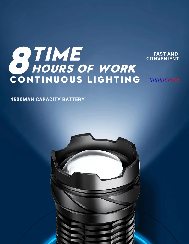 *Battery indicator light-The flashlight body has 4 power indicators, which represent 25%-50%-75%-100% of the power. The indicator light that shows the battery level can remind you to charge when the headlight is out of power. When charging, this indicator light can show the remaining power that needs to be charged.