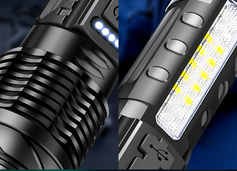 Side light illumination mode: white light, high brightness/white light, low brightness/red light/red light+blue light flashing (it takes a long press and hold of the switch for 3 seconds to turn on the side lights)