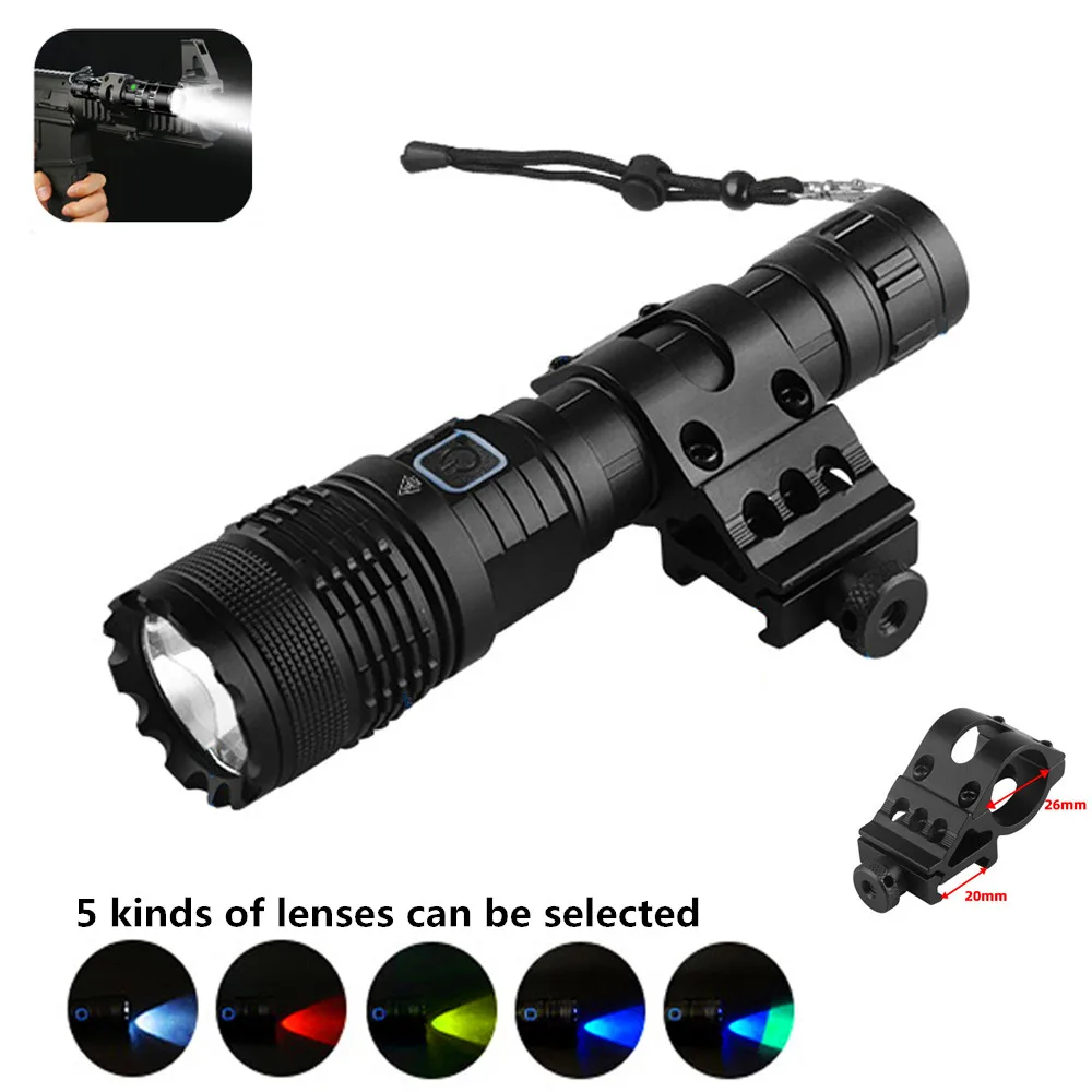 Powerful LED Flashlight USB Rechargeable Five Kinds of Light Torch Waterproof Fishing Camping Supplies Search for Tactic Torch