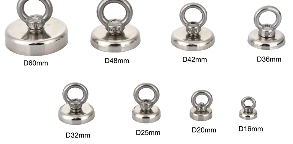 Powerful Neodymium Magnet Hook Salvage Magnet Strong Deep Sea Search Fishing Magnets Pulling Mounting Pot with Eyebolt