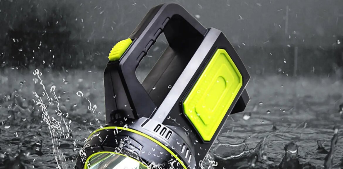 Waterproof material ensures the searchlight can prevent splashing water in all directions. Compared to its enormous size, it weights only 250g, which makes it easy for even a children to pick it up and use it.