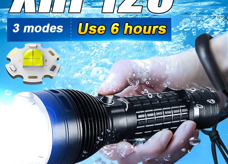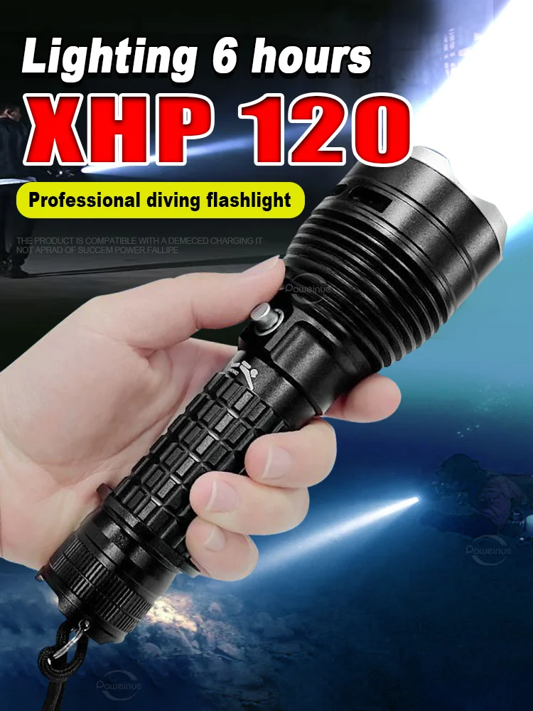 Professional Diving Flashlight Ultra Powerful XHP120 Led Scuba Torch Lights Fishing Diving Lantern Underwater Search Tools Lamp