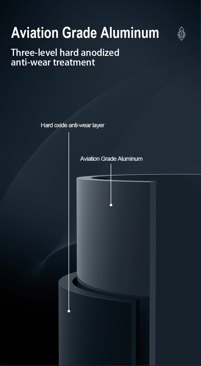 ๐Made of aircraft grade aluminum alloy, hard anodized; abrasion, scratch and shock resistant.