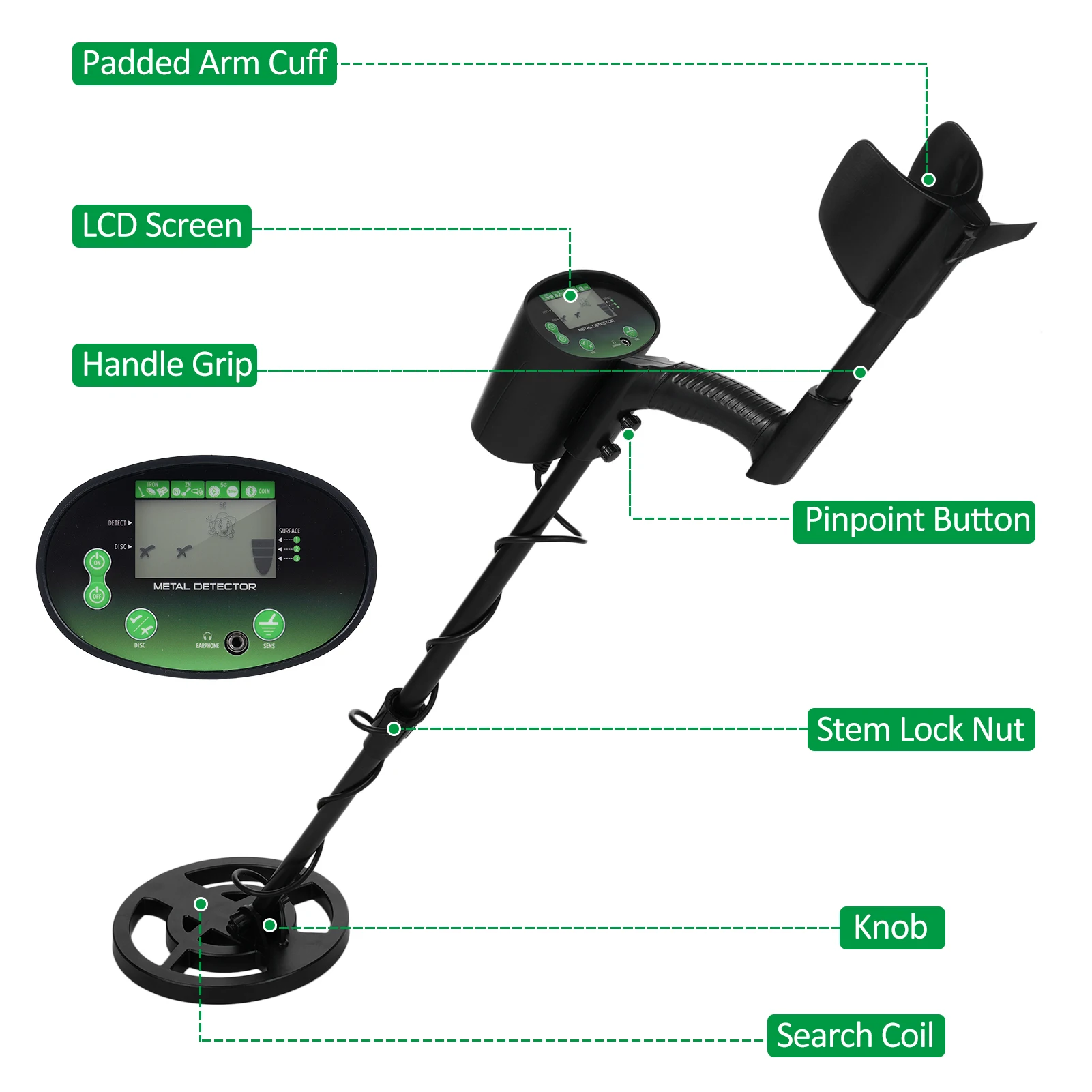 Adjustable Stem: Lets you adjust the detector's length.