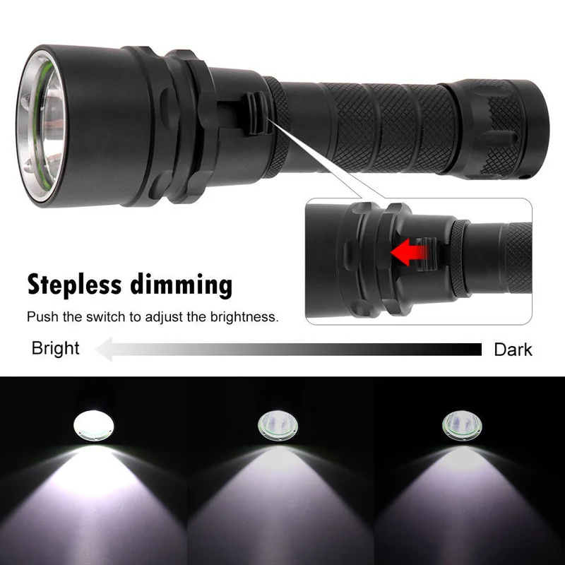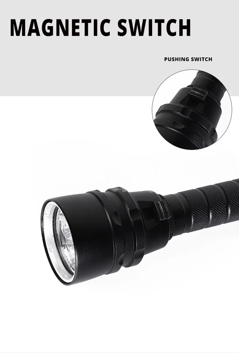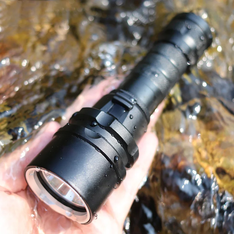 Product features: aluminum alloy shell flashlight, super waterproof, professional diving lighting tools.