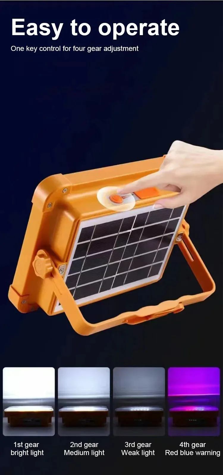 2000W solar light LED floodlight rechargeable high-power aluminum 10000LM outdoor emergency garage waterproof
