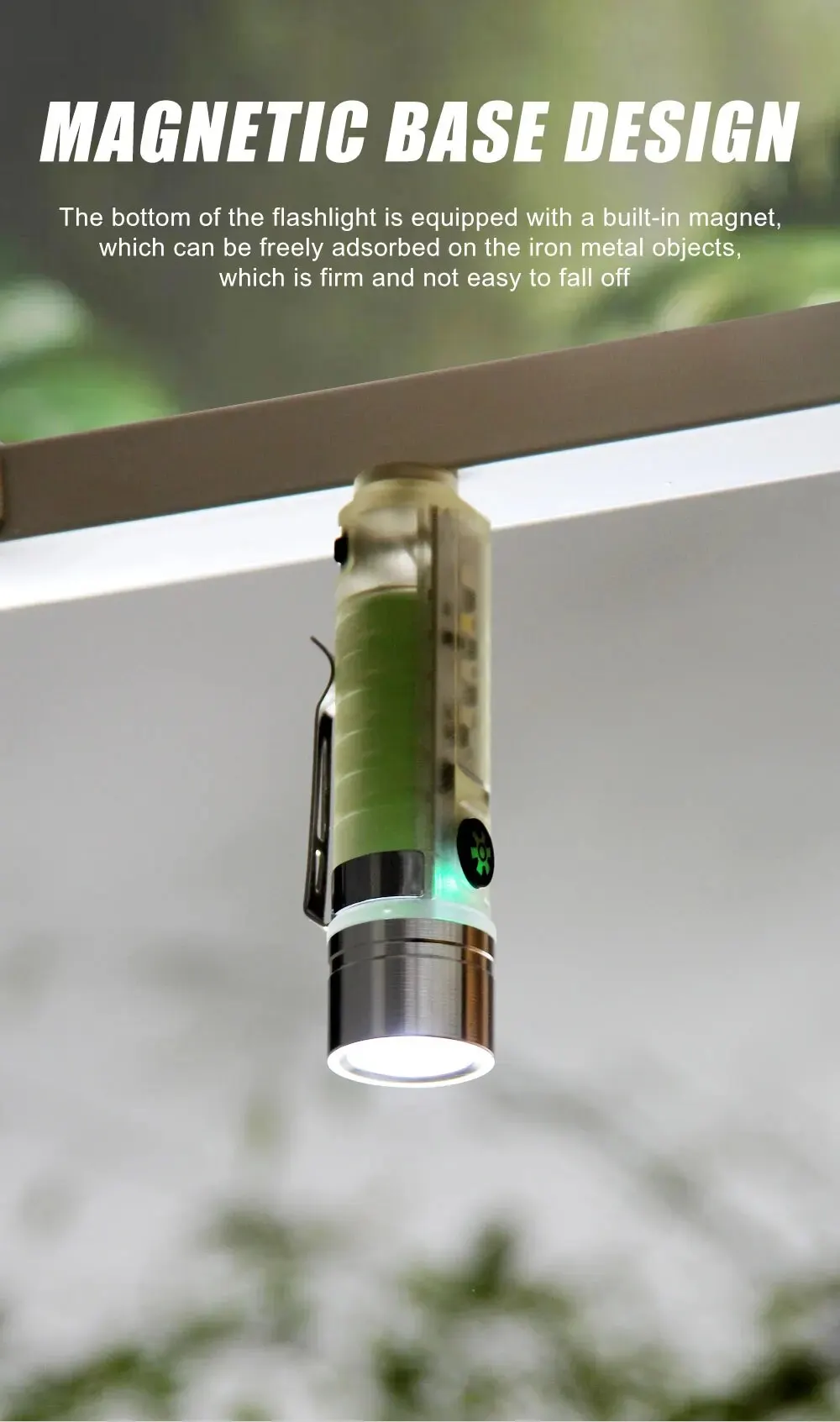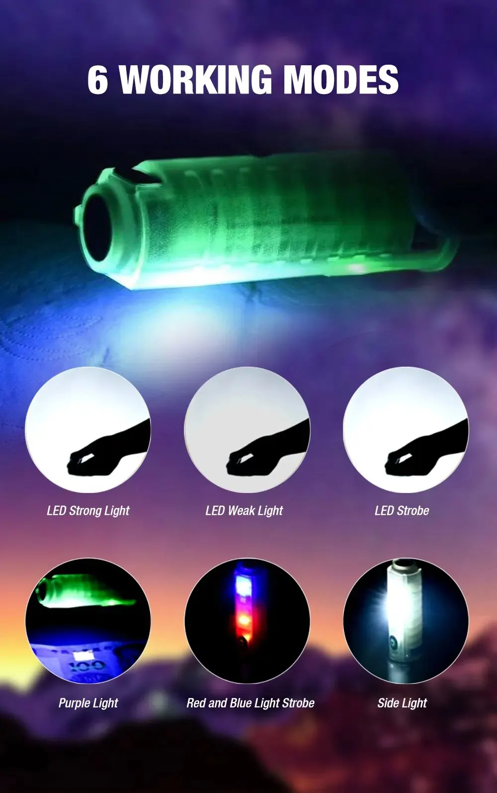 SUPER BRIGHT & MULTI-FUNCTION:Flashlight is equipped with a super bright LED wick, which can produce up to 800 lumens. The design of mountaineering buckle pocket clipand magnetic baseallows you to easily carry and use the key chain light in different scenarios.