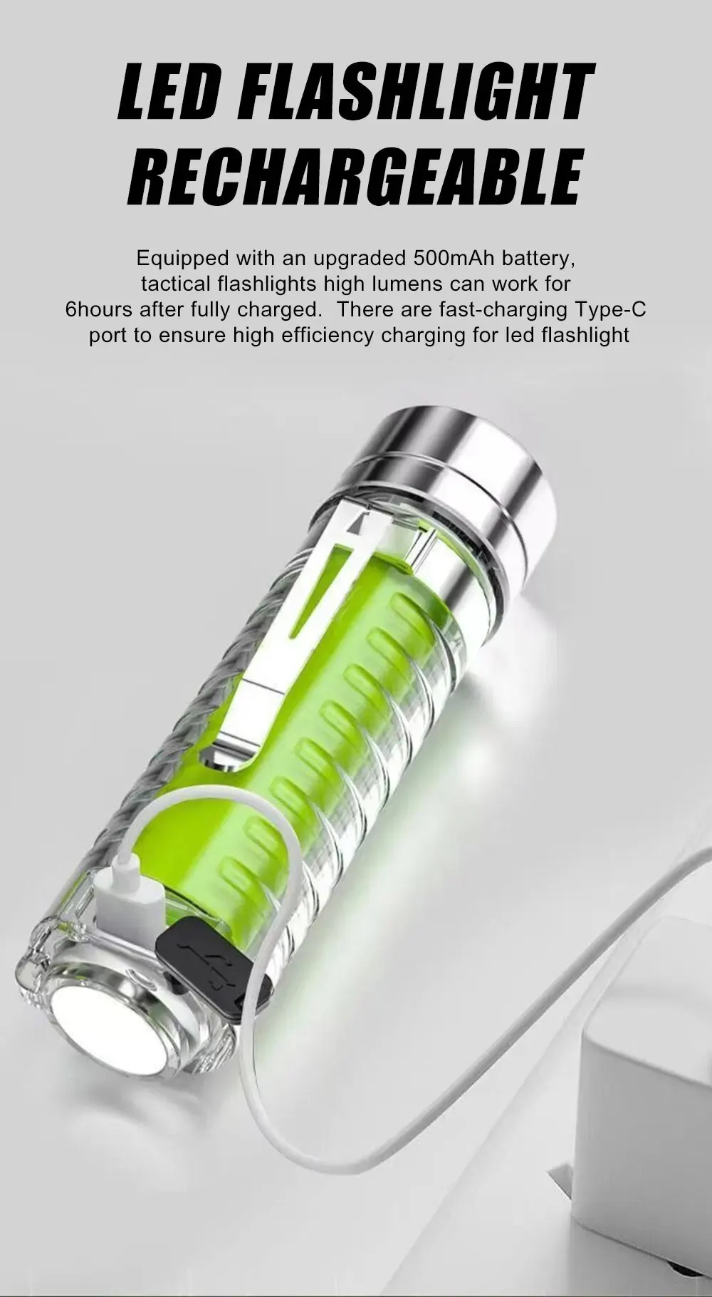 • Rechargeable :The flashlight is rechargeable, eliminating the need for frequent battery replacements.